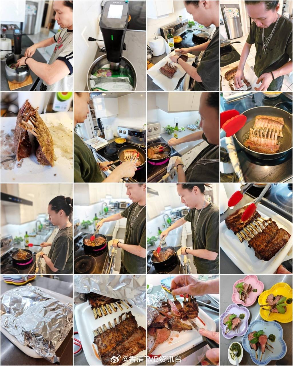 林嘉华儿子下厨动作纯熟照片记录了林政峰的整个烹饪过程,从备料、用真空慢煮棒处理羊架,到下锅香煎、细心摆盘,每一步都一丝不苟,动作熟练,可见厨艺相当不错。林嘉华家中的厨房宽敞明亮、设备齐全,充满现代感,饭厅布置简洁温馨,绿色植物为家居增添不少生气。