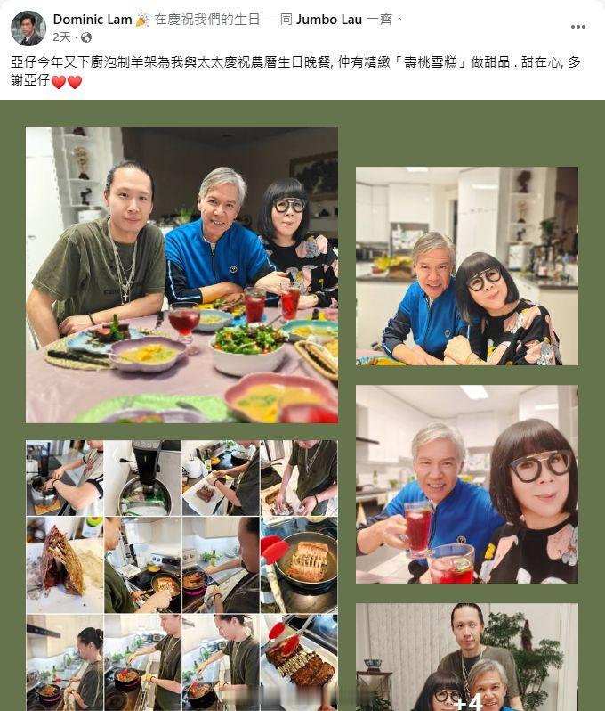林嘉华儿子遗传母亲设计天分林嘉华在Facebook留言:“儿子今年又下厨煮羊架,为我和太太庆祝农历生日晚餐,还有精致寿桃雪糕做甜品,甜在心。多谢儿子!”太太刘宝珍也感动表示:“Jefford近日工作十分忙碌,但都抽时间为我和老公亲手炮制我们的农历生日晚餐,我们吃得很滋味又窝心,感觉老怀安慰。Thank you my boy....We love you always”