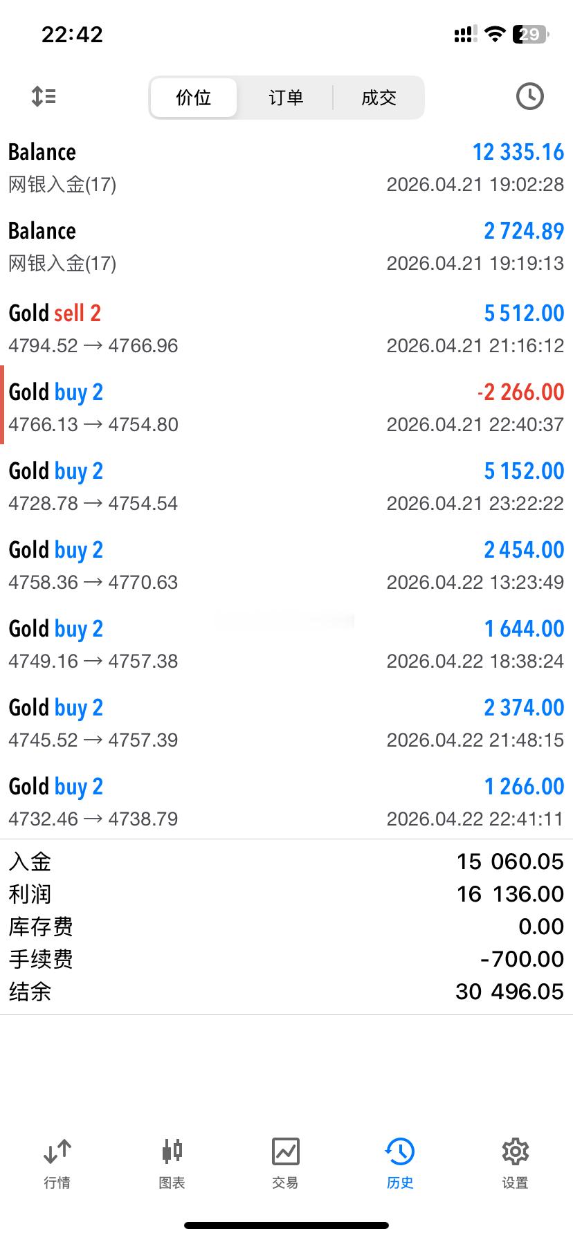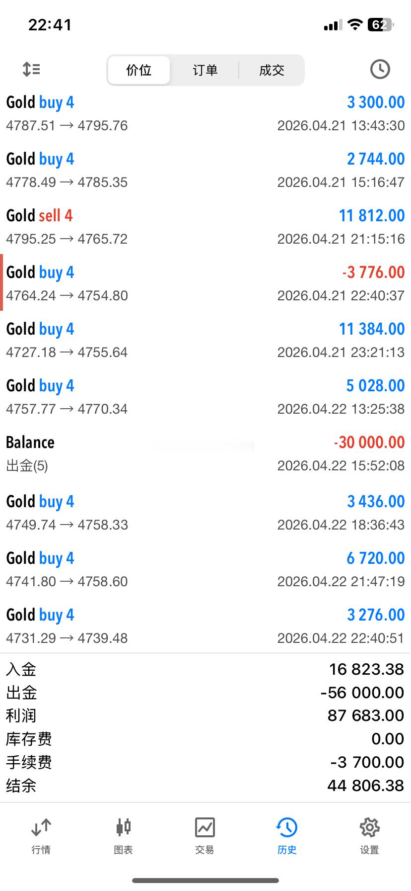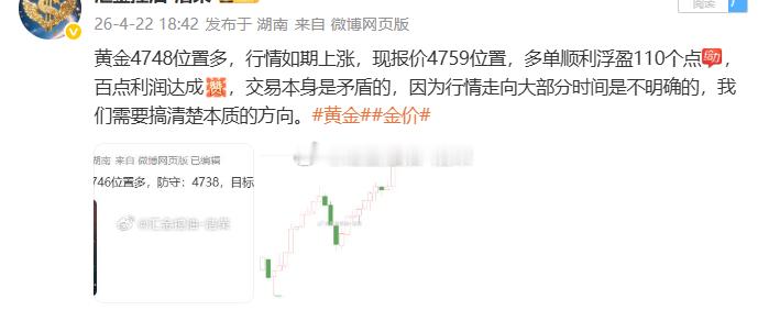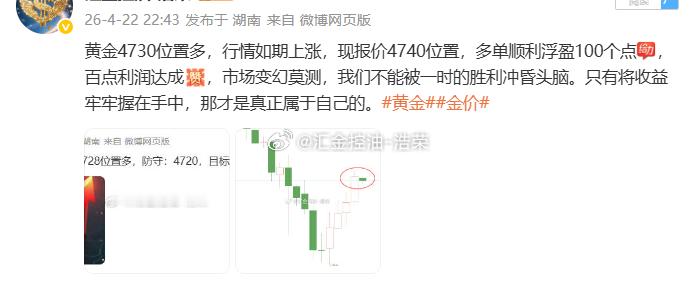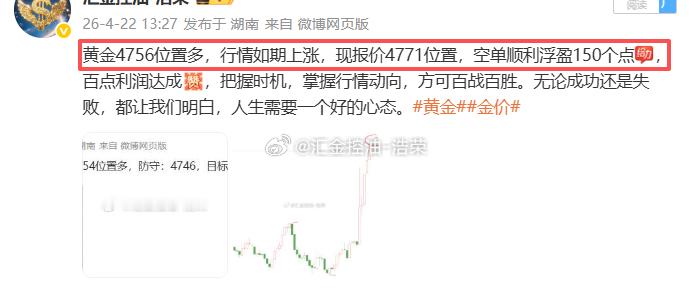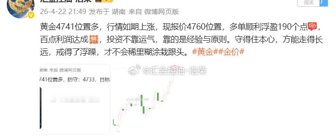 2026.4.22日操作4单,全胜,共收割800个点。无论盈亏,都要好好休息。市场永远不缺机会,缺的是清醒的头脑和健康的心态。今天到此收工,晚安。黄金 金价 晚安