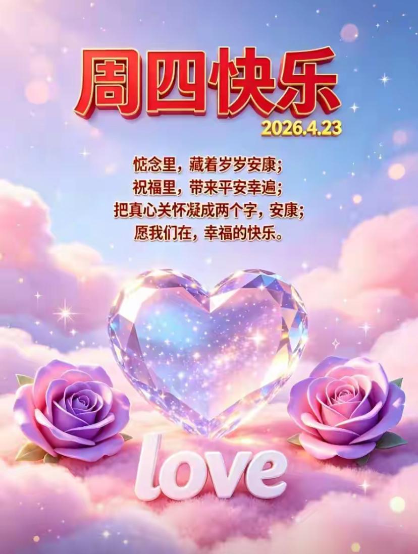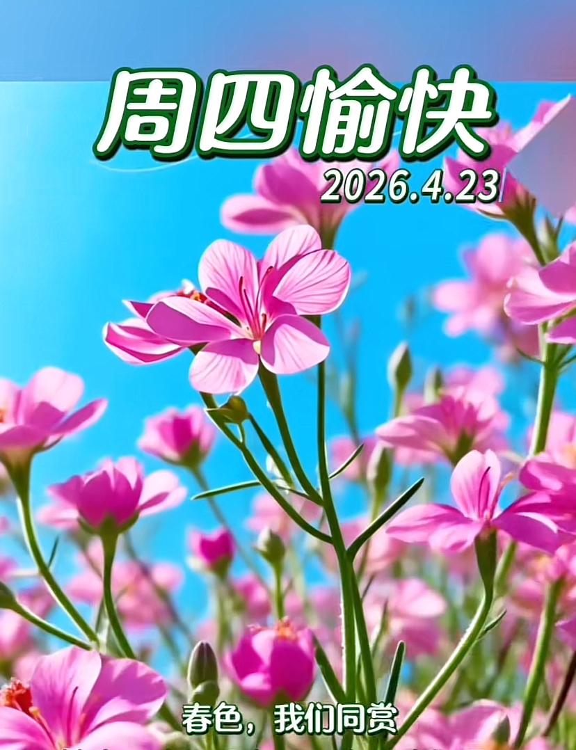 🌺☘️2026./4.23.周四春晨问安🌺 🌲🎋时至暮春,清风拂面,草木含香,山河温柔。新的清晨,放下昨日纷扰,带上满心欢喜出发。平凡的日子也藏着诗意温柔,简单的时光亦满是馨香。一句问候,寄去深深牵挂;一份祝福,盛满真挚心意。愿你眉眼舒展,万事从容,工作稳进,事业顺达。三餐温暖,四季安然,天地温柔家添财,安全如意人多福。