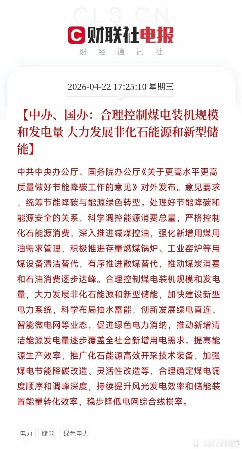刚收盘!新能源史诗级利好炸锅A股说白了,就是煤电要严控规模,新能源接棒挑大梁。就像家里用电只涨不跌,今年一季度全社会用电量同比涨5.2%,累计25141亿千瓦时,用电需求持续走高,缺口全靠风光水核+储能补上 。给普通人两个忠告:别满仓梭哈追高,只拿闲钱分批布局;别碰蹭热点杂毛股,盯紧光伏、储能核心龙头。说到底,散户总被利好冲昏头,追涨杀跌反复被收割。我明说:这是行业长期利好,绝不是散户短线暴富的密码。你会因为这个利好,直接满仓冲进去吗?普通人炒股,守住本金永远比赚快钱重要,别被热点牵着鼻子走。网友热评:1. 冤种散户:“上次听利好冲进去,现在还套30个点,这次打死不碰了”2. 理性分析:“政策是长期的,需求也在,短线别追高,分批建仓才稳妥”3. 吃瓜吐槽:“A股的利好,永远是主力出货的借口,见怪不怪了”4. 打工人视角:“工资都不够花,哪有钱炒股,就纯纯看个热闹”5. 老股民:“板块跌了快4年,估值都在低位,长期看确实有机会”你觉得新能源这次能真正迎来反弹吗?评论区聊聊。