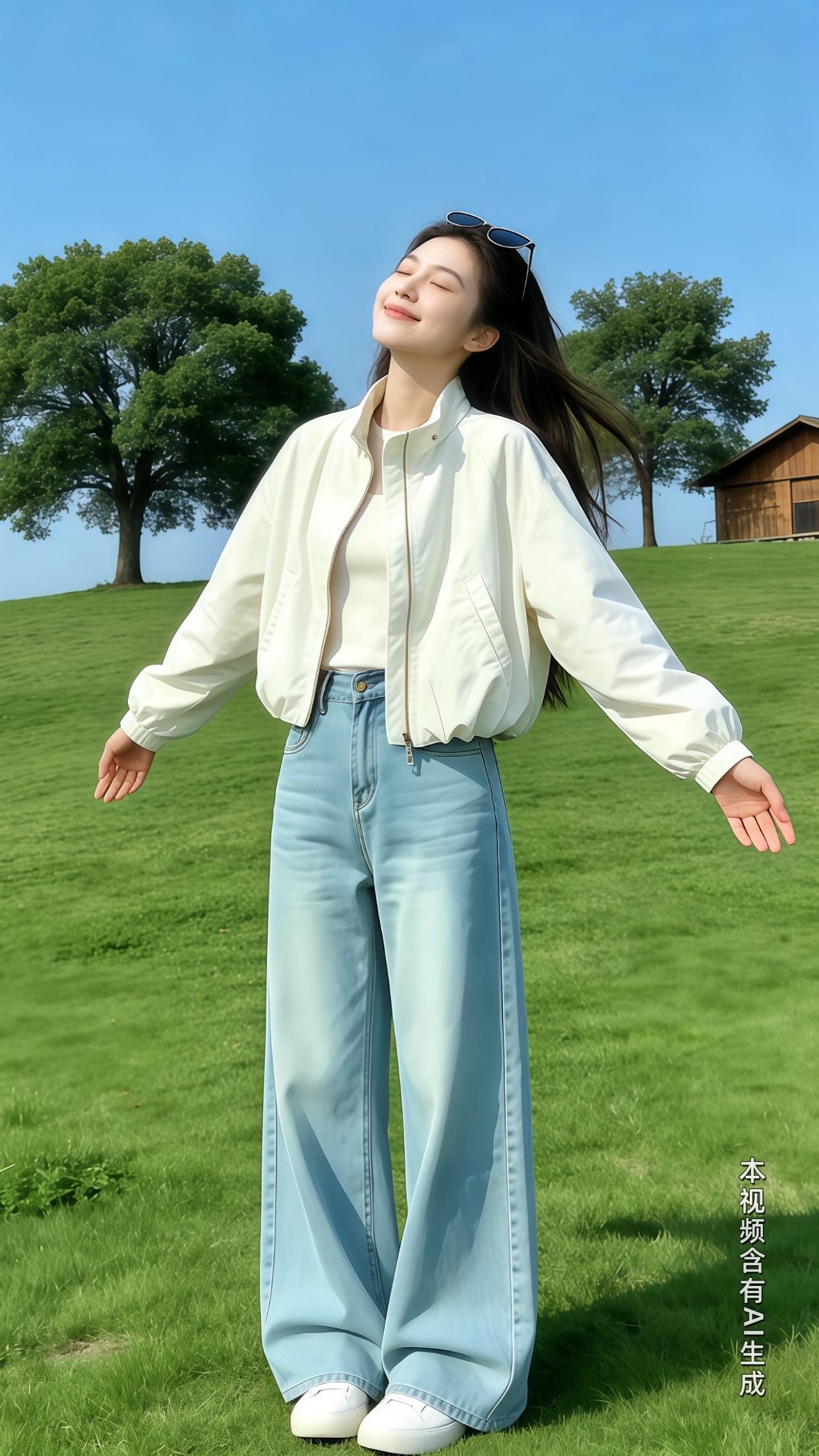 简约而不简单,确实是女神范儿的真谛,一条灰白牛仔裤搭配白色内T!时尚女性气质气