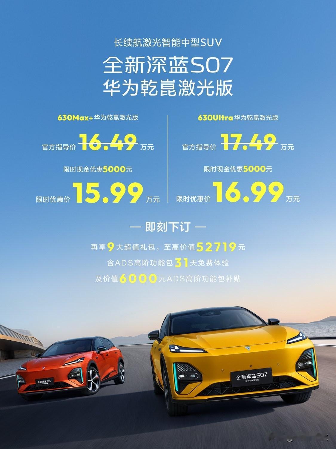 快充技术是其核心亮点之一, 显著提升了补能效率, 尤其适合日常通勤和长途出行使用。 超级快充关键参数 充电时间:30% → 80% 仅需15分钟 补能效率:10分钟可补充约200公里CLTC续航 电池容量:77.94kWh 金钟罩磷酸铁锂电池 低温优化:配备31档微核高频脉冲加热技术,在-30℃极寒环境下,快充时间可缩短40%以上(部分资料称达54%) 长途出行:高速工况下实际续航约520km(110km/h匀速),中途仅需短暂停靠充电15分钟即可继续行程。 冬季表现:在-17℃至-24℃环境中,低温续航达成率达47.8%,配合快充技术有效缓解“冬季里程焦虑”。 全新深蓝S07华为激光版上市 该快充系统为全系标配,无需额外选装,体现了深蓝汽车“技术平权”的产品策略。