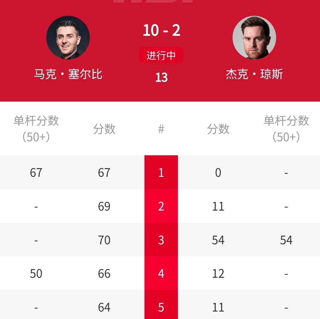 世锦赛战报:10-2,4届世锦赛冠军打爆世锦赛亚军!北京时间4月23日凌晨,刚刚结束的2026斯诺克世锦赛第一轮,第二阶段的一场焦点比赛中,4届世锦赛冠军“磨王”马克-塞尔比,迎战2024年世锦赛亚军杰克-琼斯。经过激烈争夺,塞尔比实力碾压,总比分10-2将琼斯横扫出局,强势开启今年世锦赛之旅。这场比赛第一阶段,塞尔比一上来连胜六局,取得6-0的梦幻开局。第七局,对手琼斯抓住机会扳回一分,比分追成1-1。随后的比赛中,塞尔比打出单杆50+,将比分扩大到7-1。第九局,琼斯打出单杆90分,2-7扳回一局。第一阶段,塞尔比遥遥领先。双方的第二阶段,在今天凌晨2点开始,塞尔比继续强势发力,总比分10-2横扫晋级!赵心童 奥沙利文
