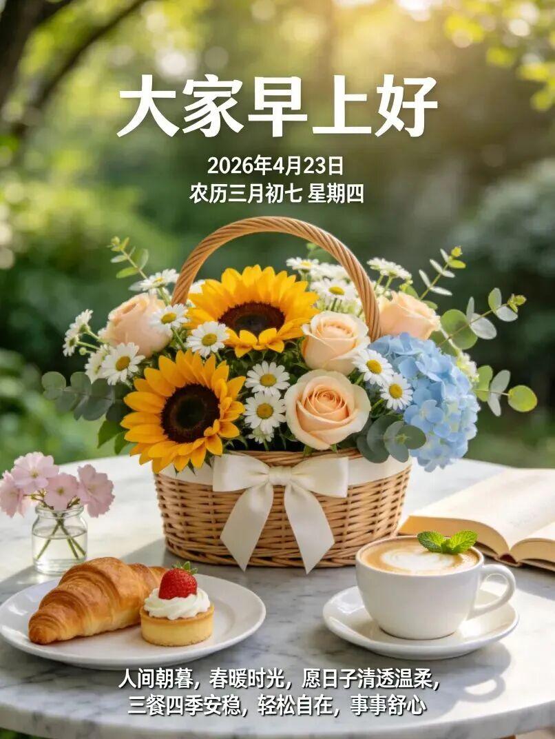 🌷🌅早晨,阳光和风在你的脸上轻轻拂过,💝这是一个崭新的开始,🌊愿你心情愉悦,一切顺心,💖愿你今天无忧无虑,万事如意!🍉工作,生活,🍁爱情,尽享幸福的滋味!💐