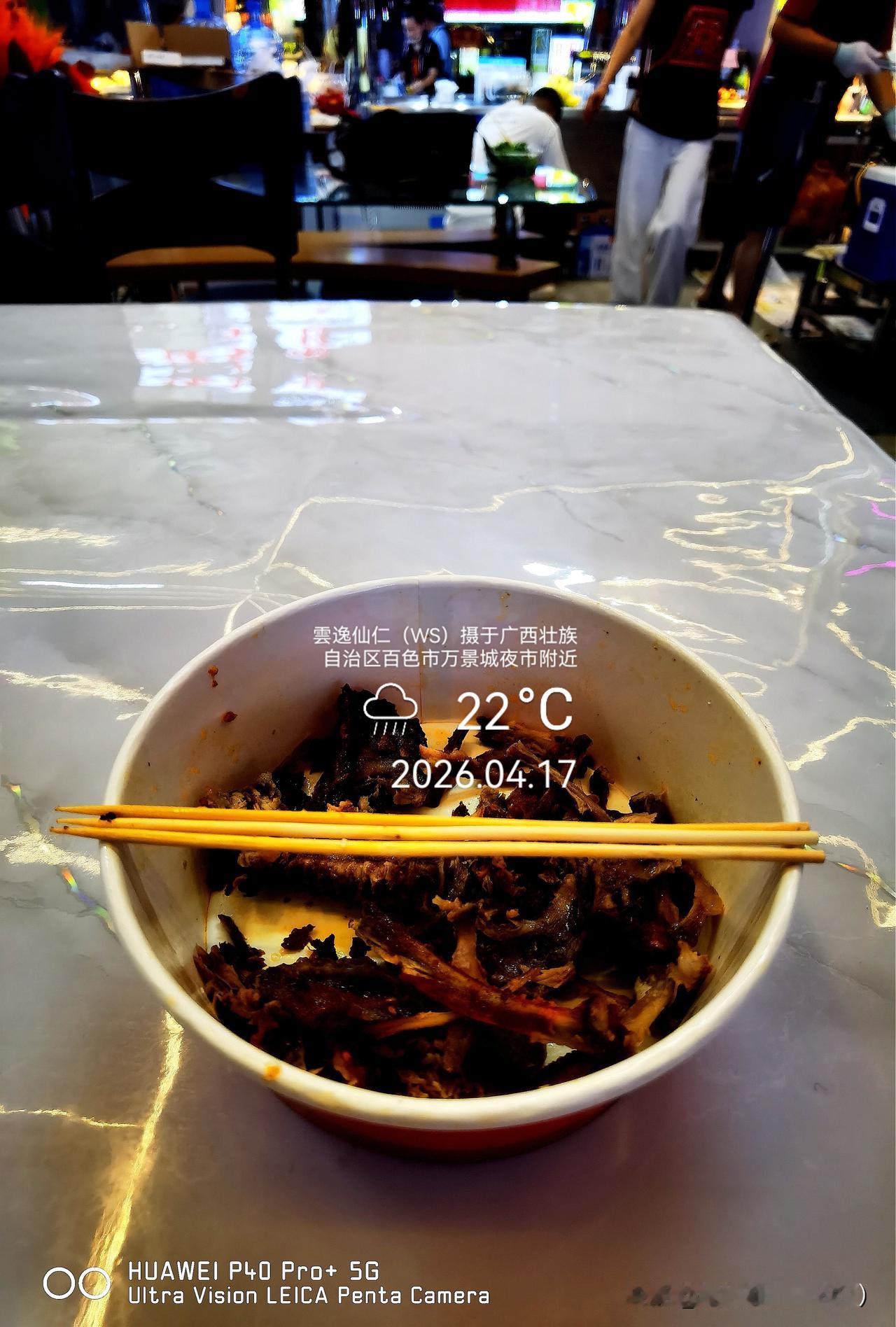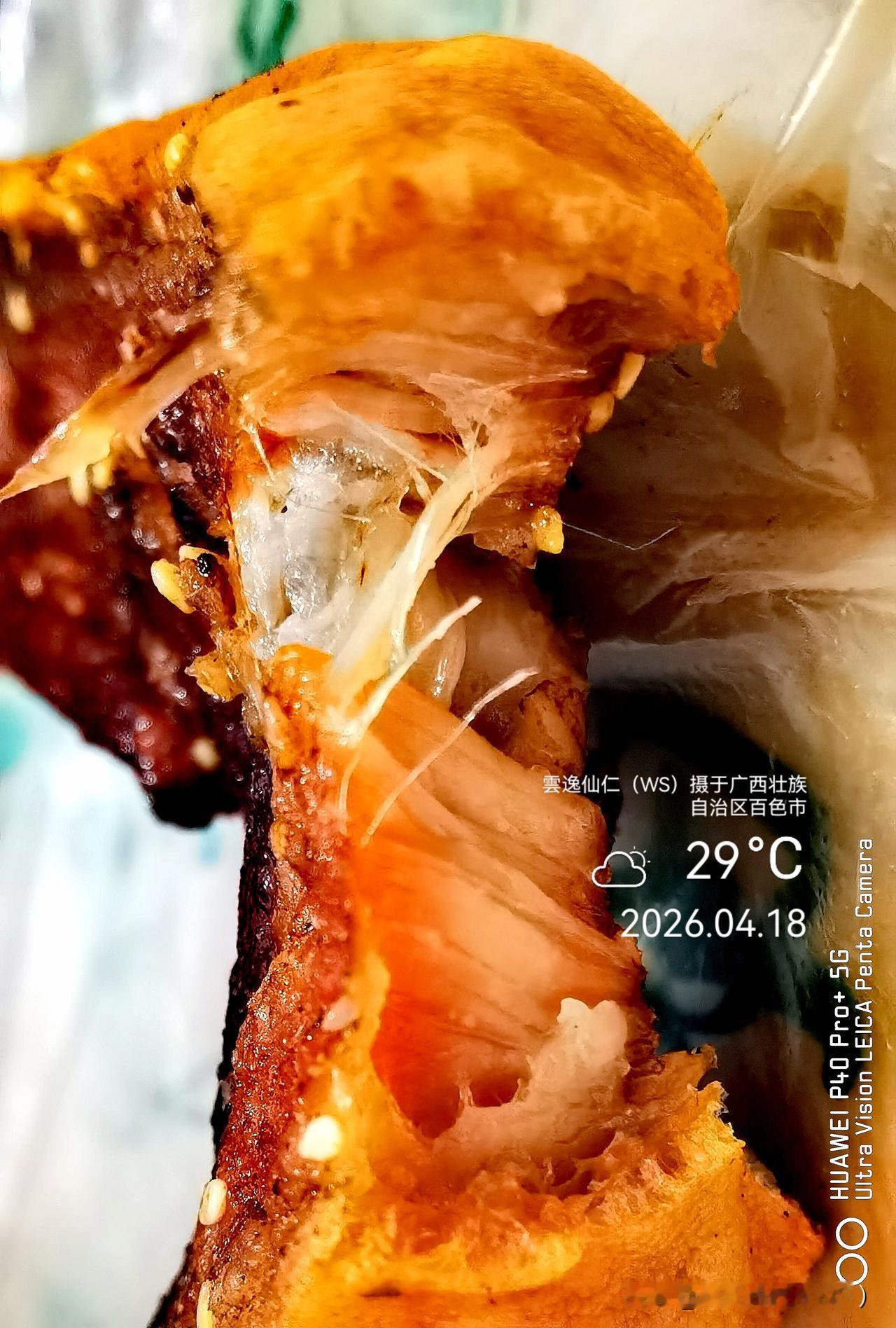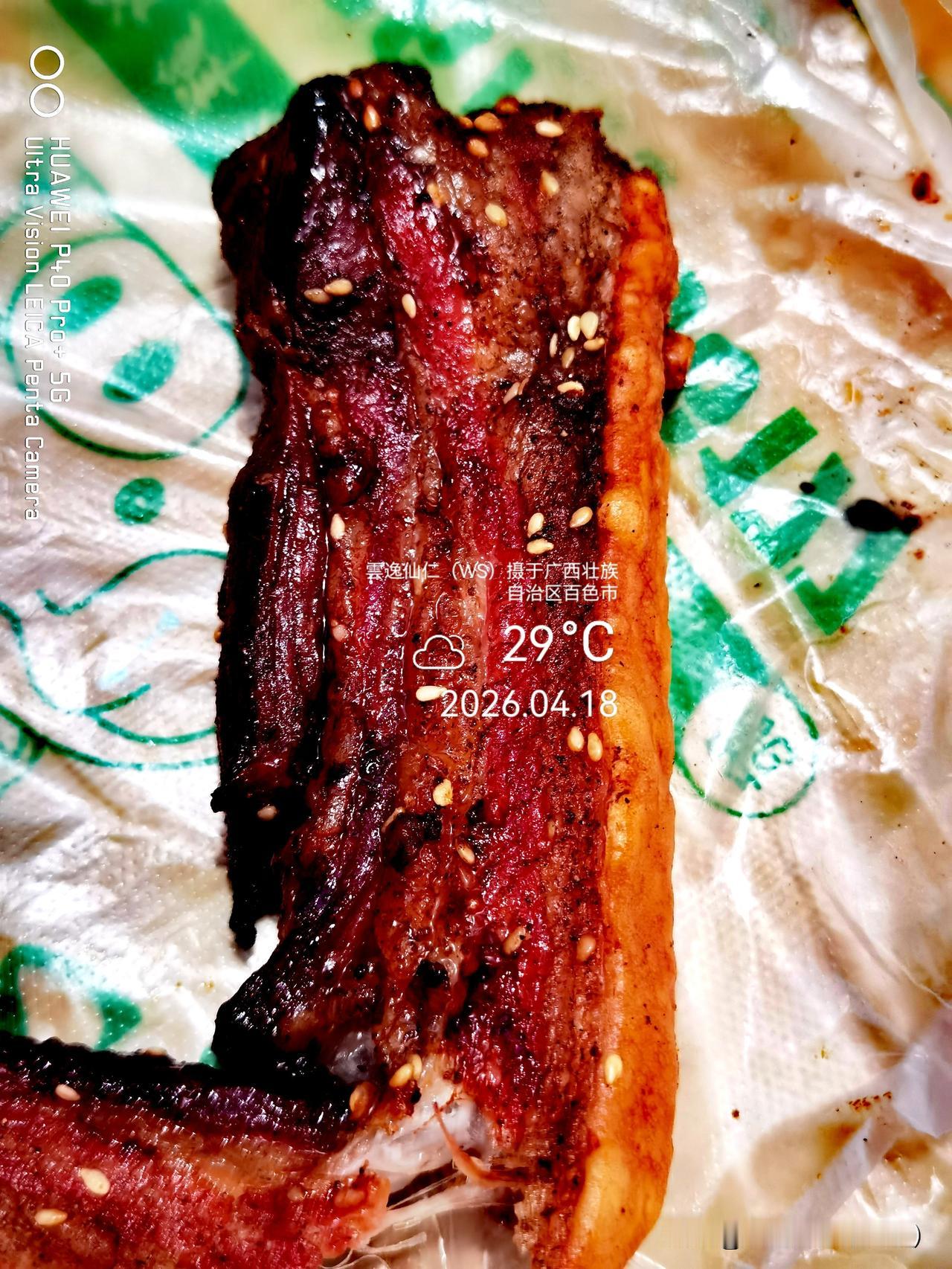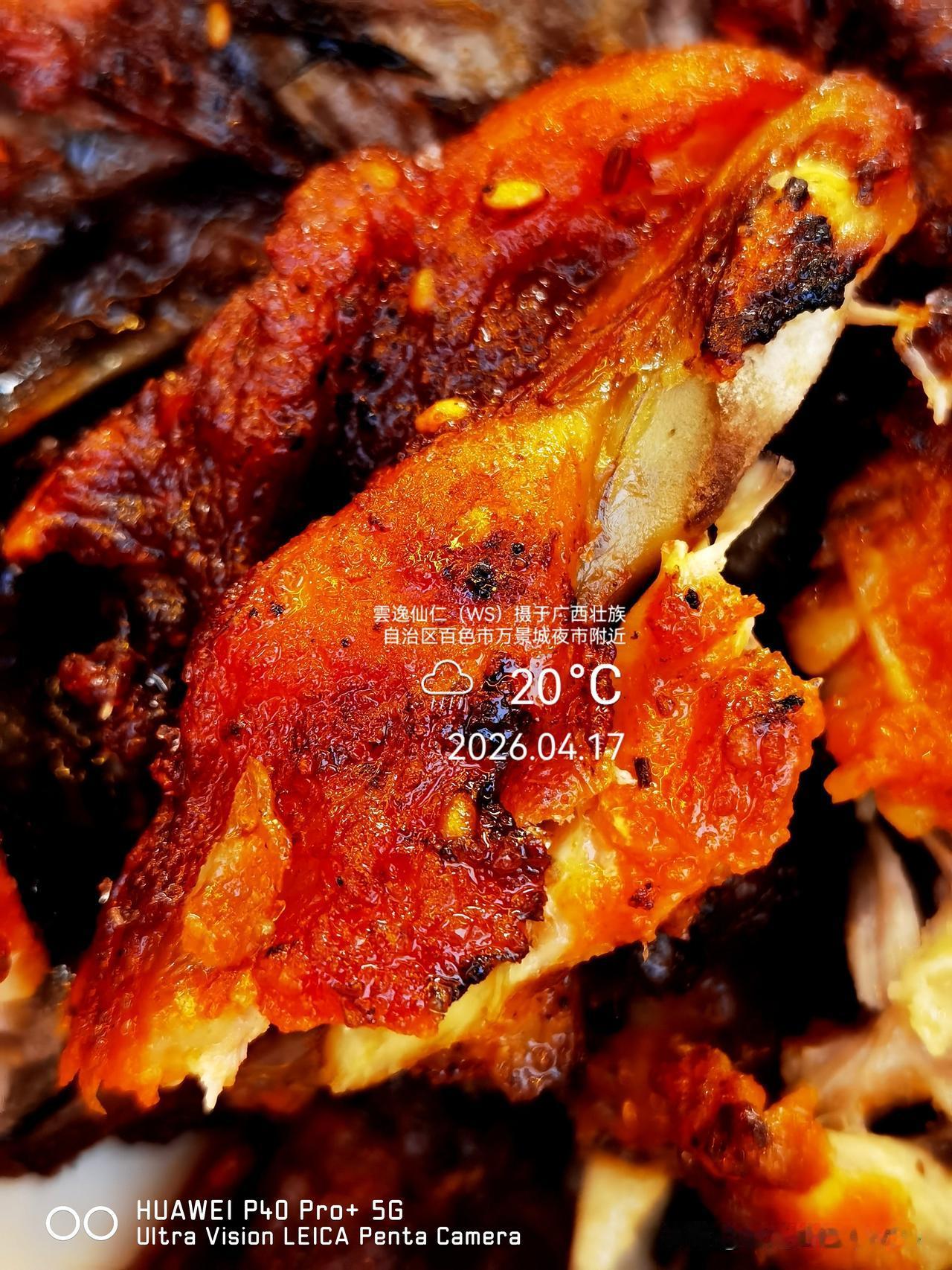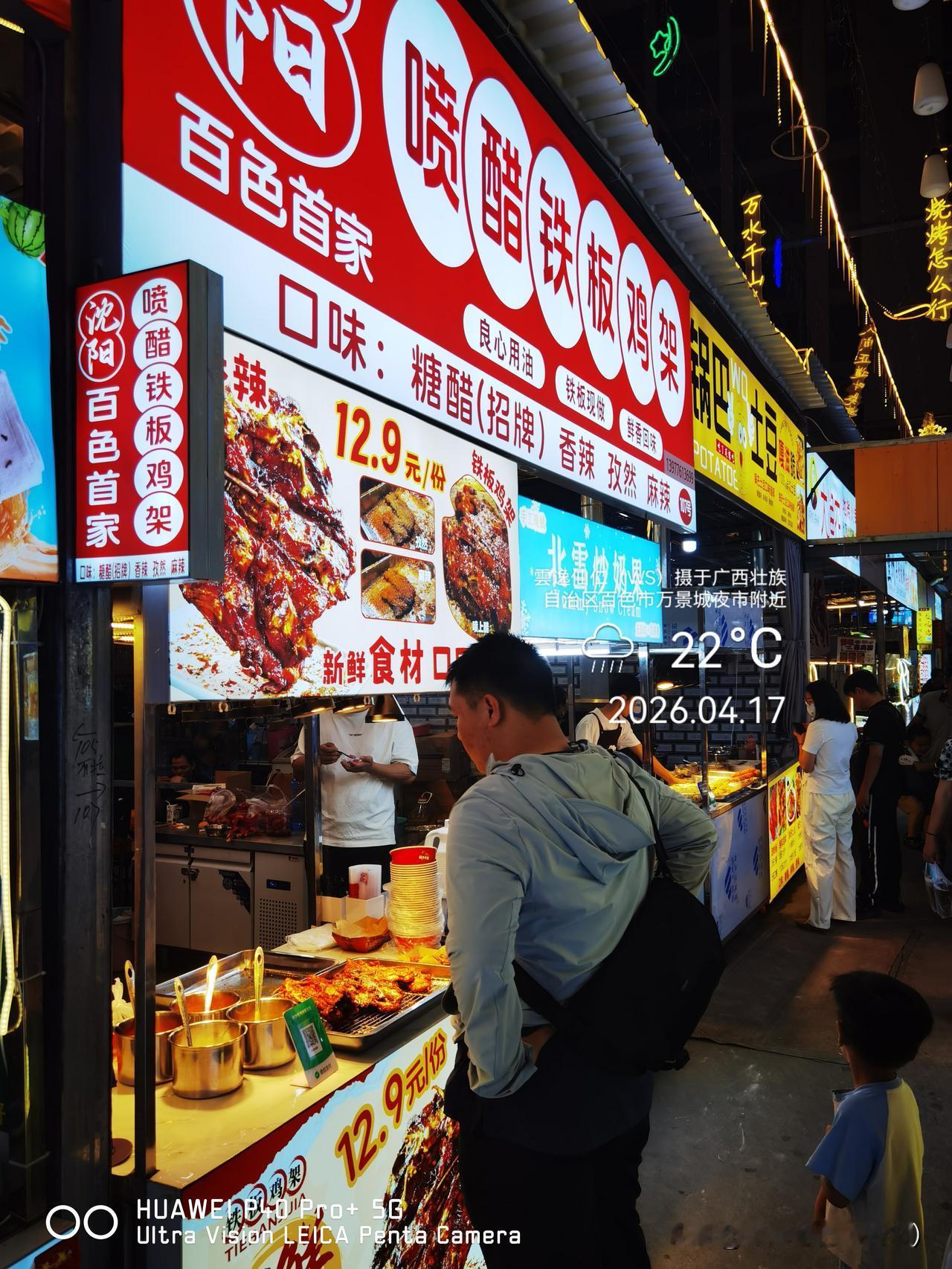 旅居生活记录(9551)广西壮族自治区百色市(237)品尝小吃59:沈阳喷醋铁板鸡架(糖醋口味的,12.9元1份)、新鲜车前草甘蔗汁(7元1小杯)、烤新鲜脆皮五花猪肉(16元1条)。