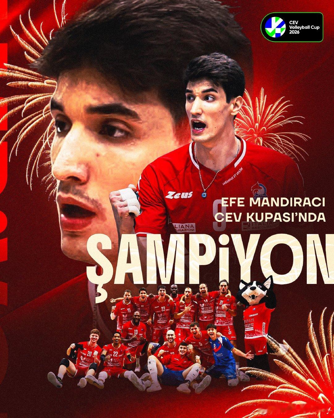 这也是土耳其一哥曼迪拉奇在海外职业联赛夺得的第一座冠军奖杯。他身披土耳其国旗绕场一圈并带着国旗登上领奖台。