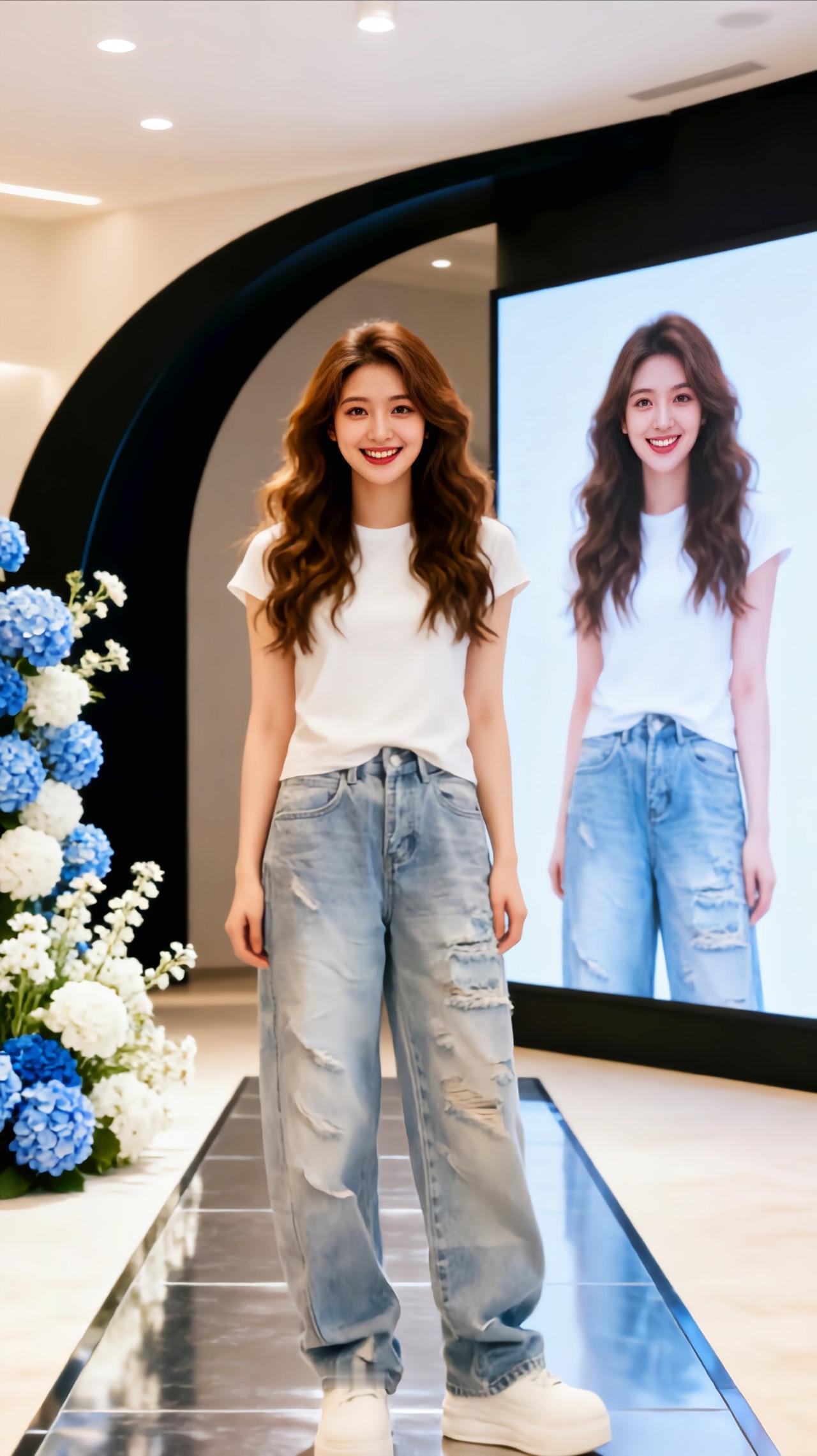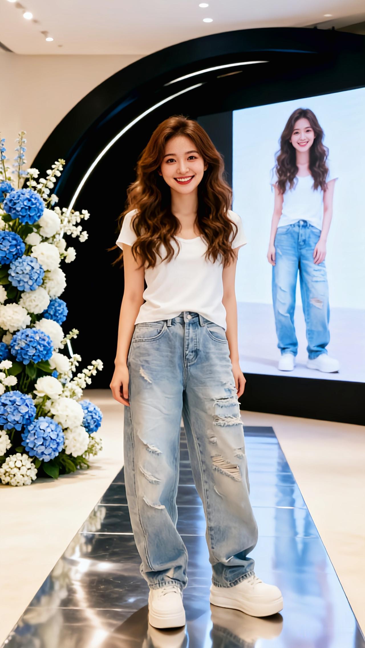 牛仔阔腿裤的百变魅力 活力牛仔裤 女浅色阔腿牛仔印花裤 春夏活力穿搭指南 美式小