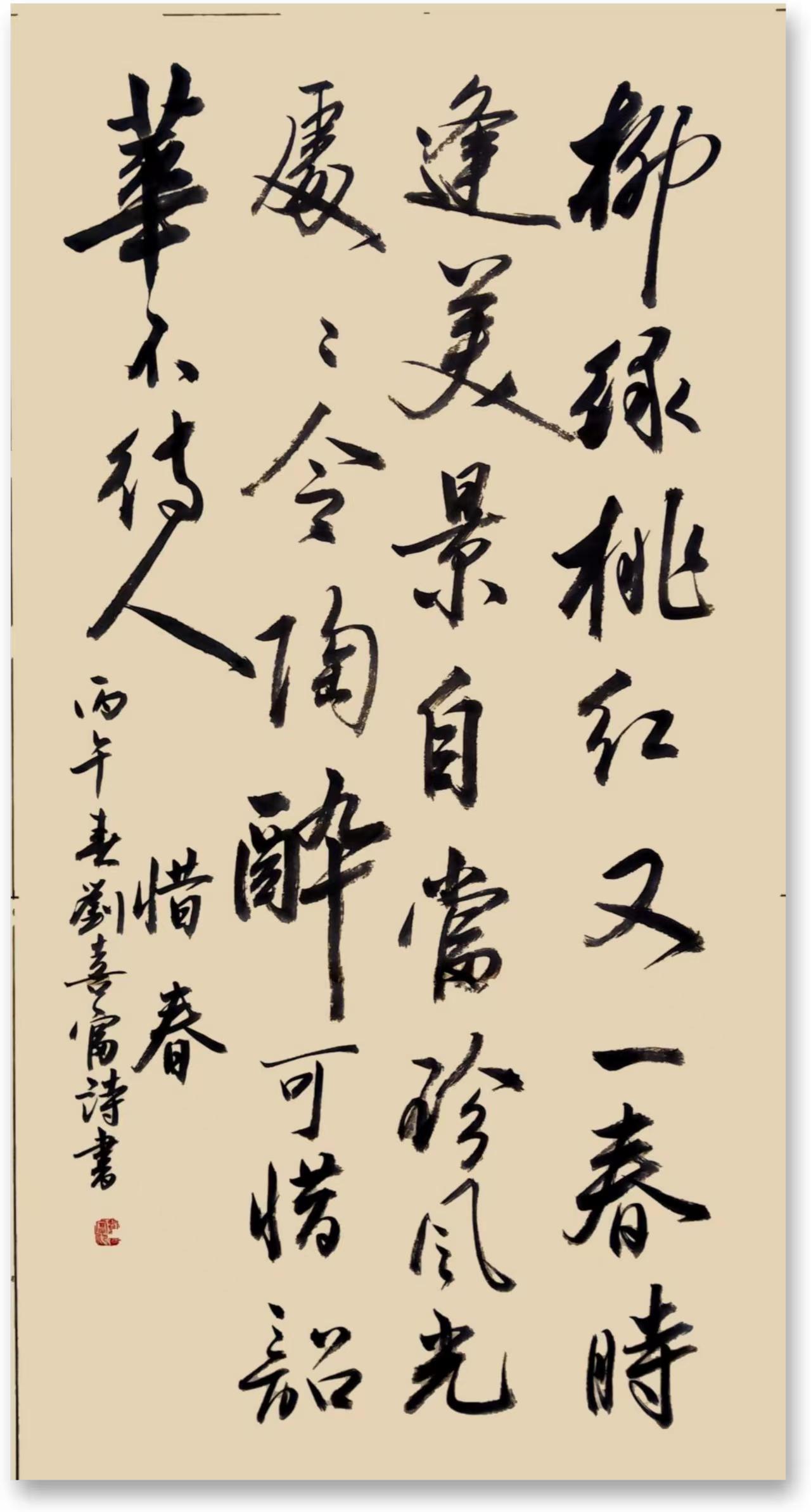惜春 文/刘喜富 柳绿桃红又一春, 时逢美景自当珍。 风光处处令陶醉, 可惜韶华不待人。展示下您的书法作品 刘喜富诗书欣赏