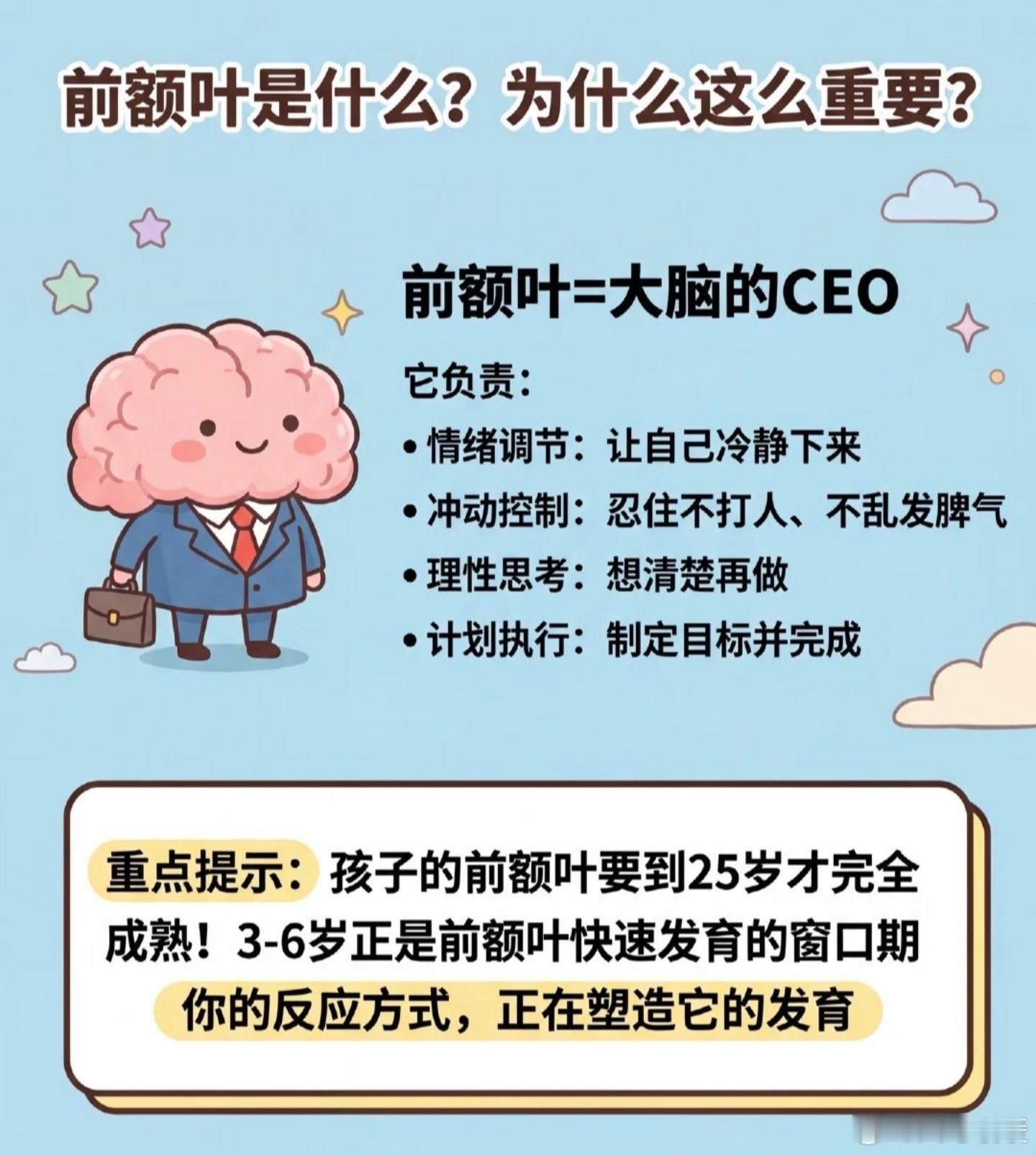 而且呀,再也不会非黑即白地看事情,能理解每个人的不同,超包容的;最后呢,三观超正超自洽,该自己担的责任绝不推脱,做事有底线,真的超靠谱!简单说,前额叶成熟的人,就是温柔又清醒,活得超舒服~原来前额叶成熟是这样的