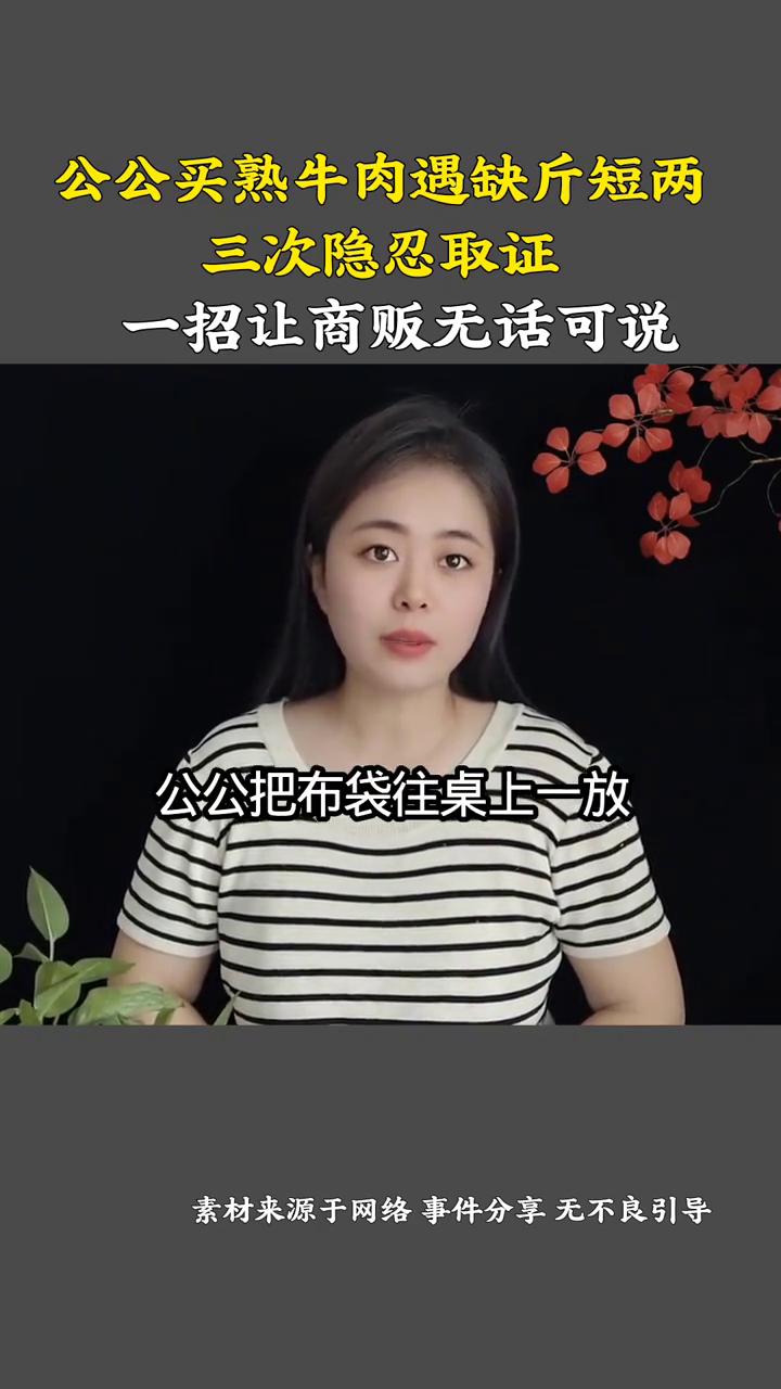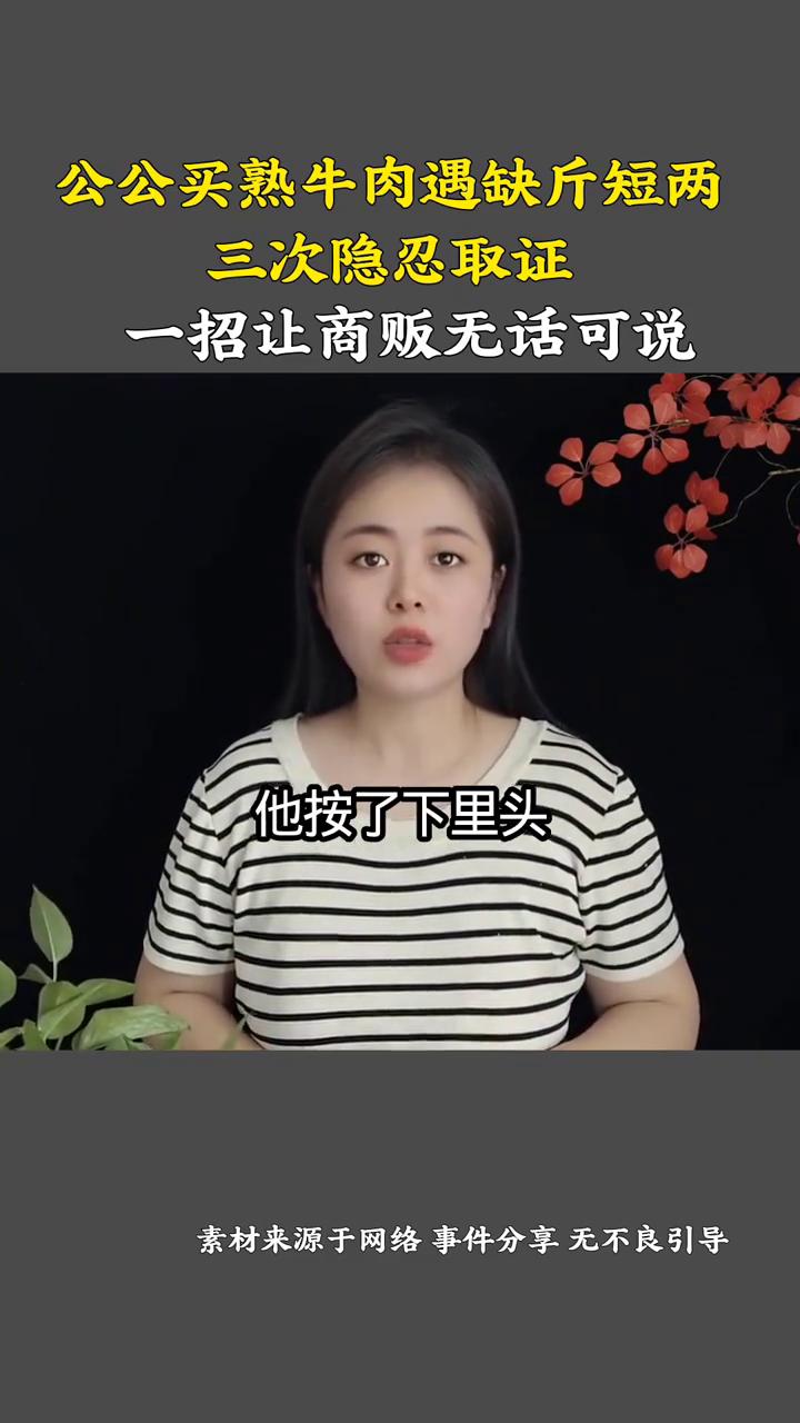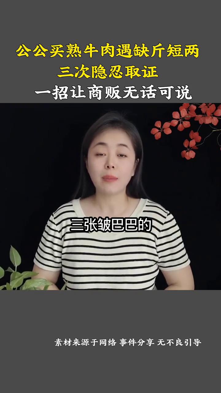 公公买熟牛肉遇缺斤短两,三次隐忍取证,一招让商贩无话可说。 公公花85元买了一斤熟牛肉,回家一称才400g。公公没去找护照,第二天依然去那家店买牛肉,这次还是买了一斤,回家称了只有410g。这下心里就有数了,他没有做牛肉吃,而是把牛肉放在了冰箱里。 第三回去买,公公手里提了个旧布袋,老板娘切肉时,他就在旁边看,有一搭没一搭的聊生意。挺好吧?还行。老顾客多,老板娘刀没停,公公付了钱,接过袋子,顺手就放进了布袋里。他没去公平秤,直接去了菜场管理处办公室做这个。 戴眼镜的年轻人正看电脑,公公把布袋往桌上一放,拿出了三包牛肉,又掏出个芯本子,上面记着前两次买肉的时间、价钱、称出来的克数。第三次的还没称。同志,您这儿有准的称吗?年轻人愣了一下,起身从柜子里拿出个台秤,三包肉依次放上400g、400g、30g,第三包395g,数字一一记在本子上。 年轻人脸色严肃起来,老爷子,这是哪家买的?里头第二排熟食摊儿卖牛肉那家。公公正把收据也拿了出来,三张皱巴巴的,但金额日期很清楚。您这试一试就发觉了,头回就觉得少没声张,想再看看管理处的人。叫上另一个同事,带着公公和那三包牛肉一起往摊位走。 路上公公把旧布袋里的东西也拿出来了,大布是个小型录音笔,比打火机大不了多少。他按了下里头,传出老板娘前两次招呼他的声音,还有报价八十五一斤的话。第三次的也怒了,摊子前还有人,老板娘看见管理处的人,又看见公公和他手里的东西,脸一下子白了。 管理人员让她用自己的秤称那三包牛肉,他的手有点抖,称出来的数居然和公公本子上记得差不多。你的称有问题,管理人员直接说检查了秤,底下粘了块小磁铁,人昧多了。老板娘想争辩,看着公公手里的录音笔和那个记事的本子画,堵在喉咙里。管理人员当场让他退了三份肉钱,一共255块,又开了罚单,责令他停业三天。称没收公路接过钱,没多说别的,把3包牛肉留在了管理处的办公室,说证据你们处理吧。 她空着手走出菜场,回到家,婆婆问:牛肉呢?公公把255块钱放在桌上,在这儿把事情简单说了。婆婆听了叹了口气,亏得你有耐心,换我头一回就去找他吵了吵架,没用,他咬死不认你也没辙。公公喝了口水,这样好,他没话说。下午儿子下班回来,听说了直说:老爸厉害,你还搞上取证了。