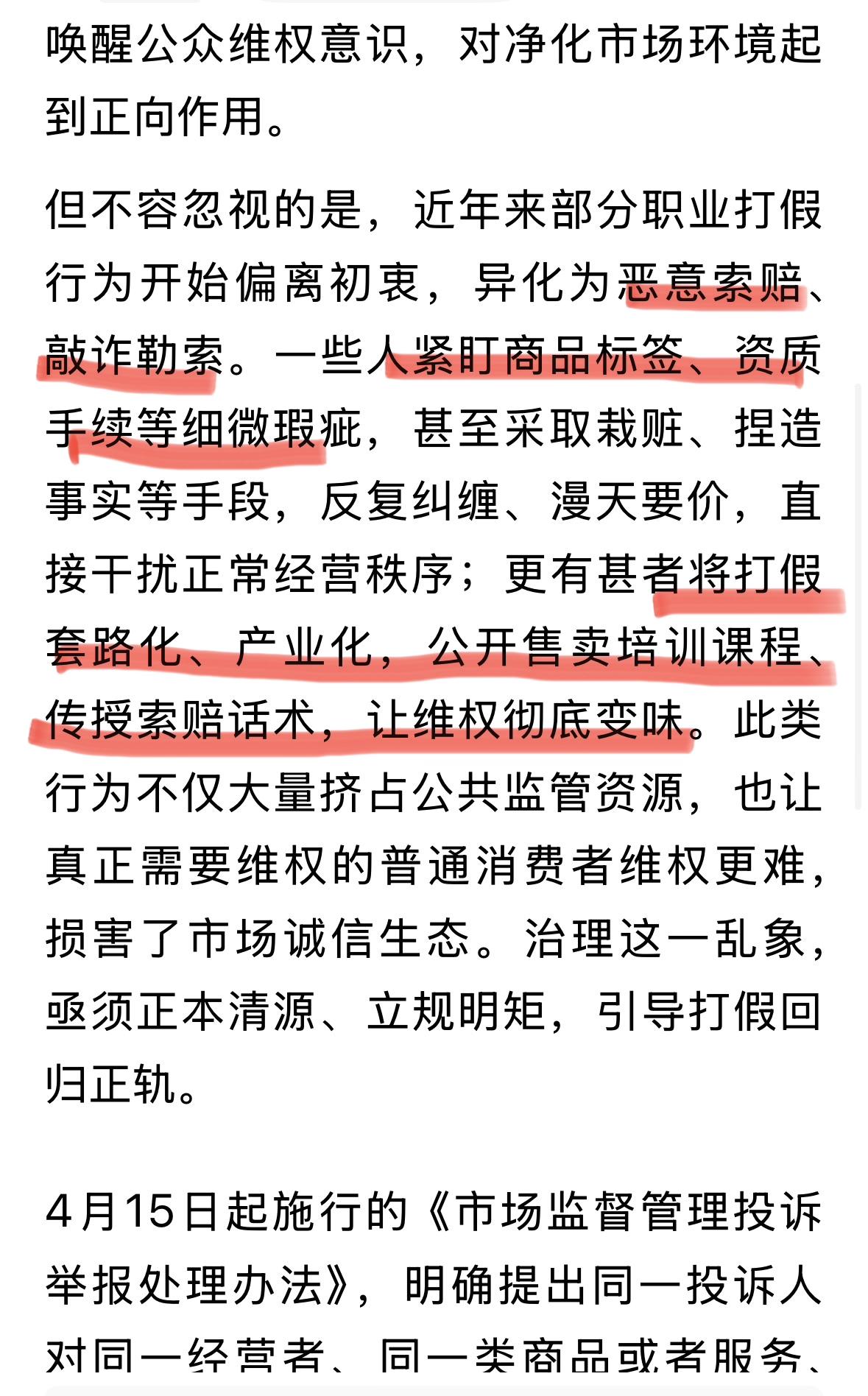 继恶意讨薪、恶意上访以后,又出现了恶意打假,对打假,只要不违法,就应该支持,主要看是不是在法律框架内打假?为什么打假成为一些人的生意?因为假的太多了,没有假货,也就成不了生意,也就没人打假了!盯着细枝末节打!大家联合起来打!反复打!持续打!狠狠滴打!这才对啊!盯着标签、资质手续这不是很标准的打假程序吗?我们国家市场,最大的问题,就是造假太猖狂,可以说造假无处不在,买东西都买怕了,靠消费者卖假货退货,根本解决不了问题,靠市场监管部门,根本无能为力,所以,应运而生的专业打假人,是我国社会经济发展的客观需要,兴办培训机构培训转业打假人员,也非常必要。职业打假人举报1200多家拍黄瓜有问题,关键看是不是有问题?如果没问题,那就是这个打假人扰乱社会治安,可以治安处理,如果确实有问题,就说明拍黄瓜问题非常严重、非常普遍,应该奖励打假人才对。对于以打假之名敲诈勒索、诈骗的,那不是打假,那是治安案件,严重的是刑事案件!对打假,不能规定打几次,打多久,打几家,如果打假一百次,这个商家还在造假,就应该把商家处理,而不是处理打假人!如果有打假人,打假一百家,一万家,成功索赔发财了,应该奖励他才对!再说一遍,敲诈勒索不是打假,不要和打假相提并论,对专业打假人就是要鼓励,支持,经济日报这个态度,是我们国家假货横行的根源,实际上,是不让打假,事实证明,如果仅仅让消费者打假,不可能杜绝造假,必须让王海打假,出现更多的王海!我们的市场才有希望。