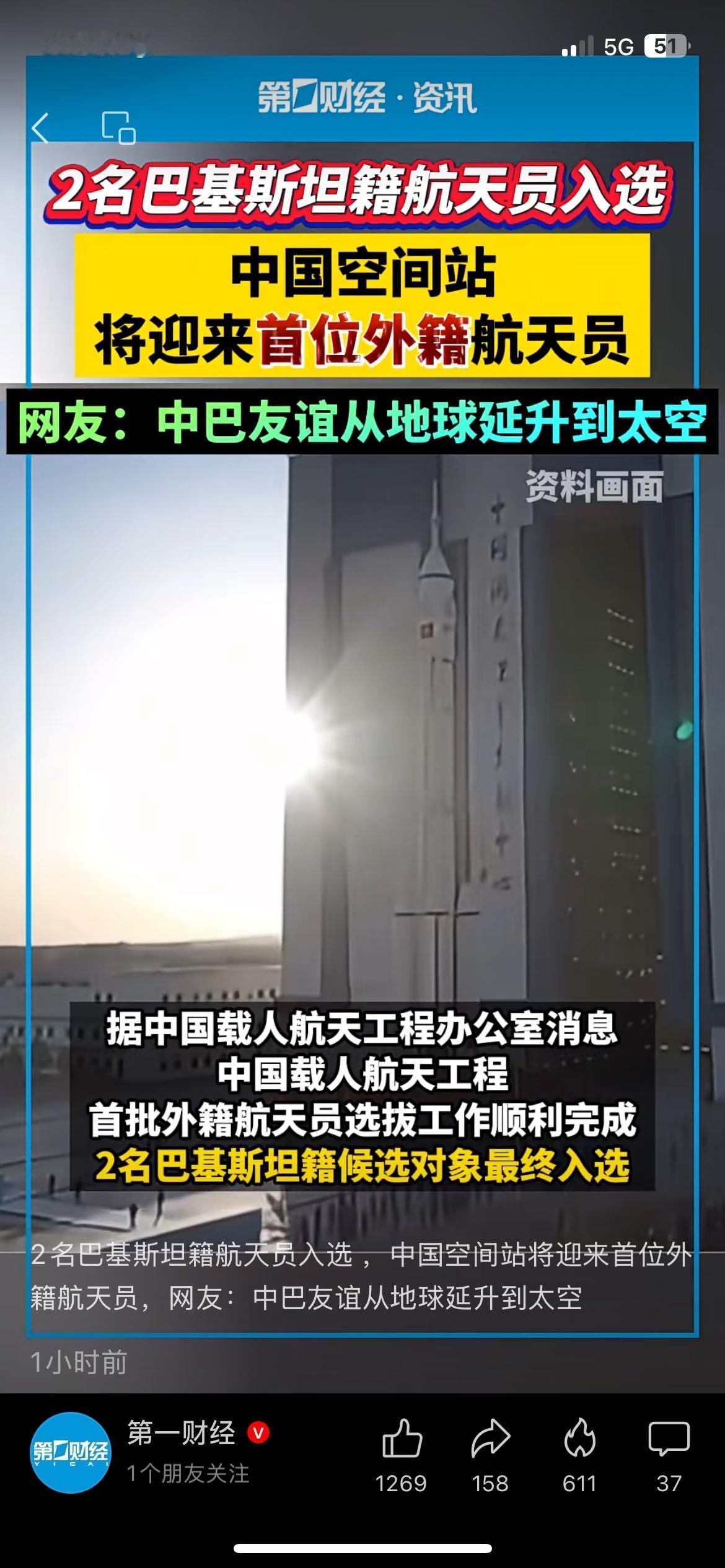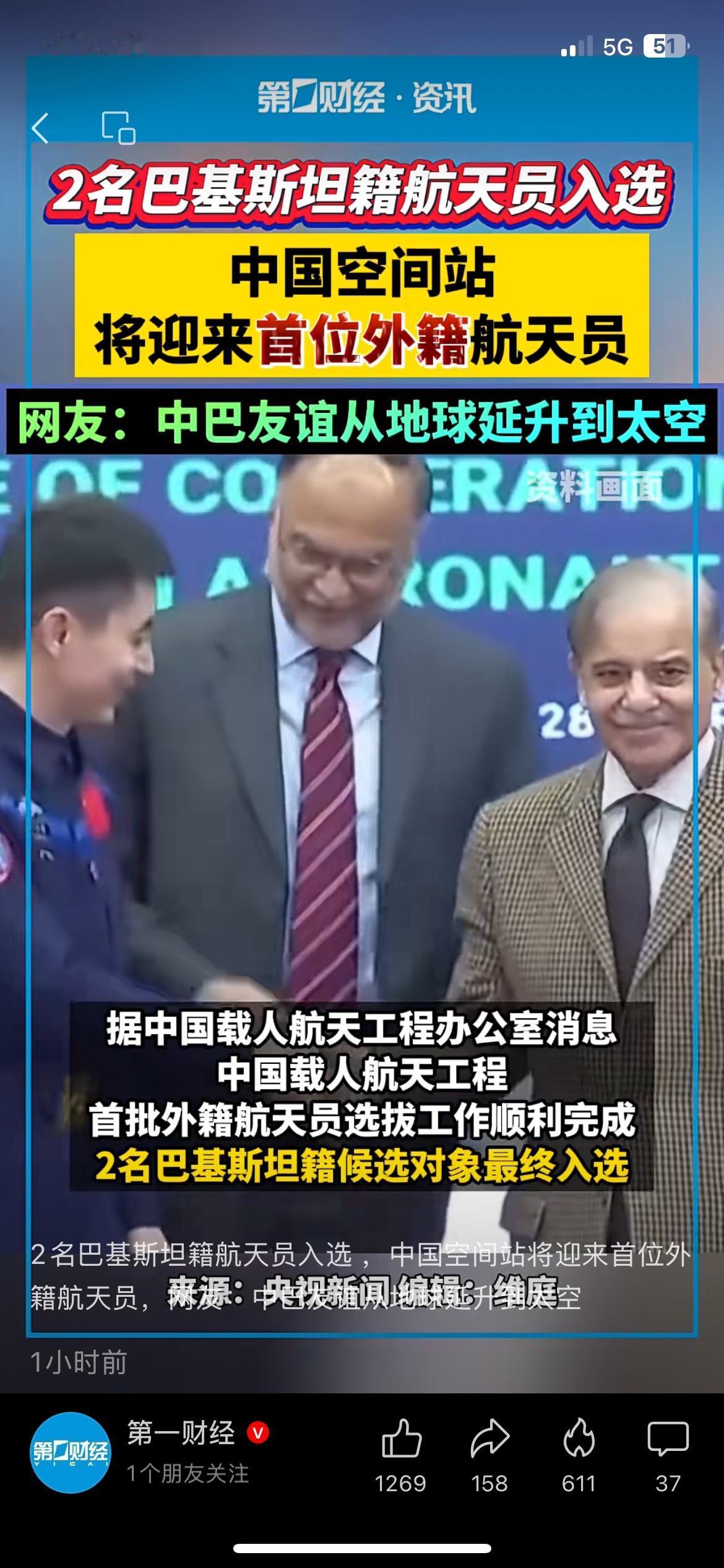 中国空间站迎来巴方航天员,家国自豪感拉满 中国航天再迎里程碑,巴基斯坦航天员入选预备梯队,其中一人将入驻中国空间站。从地面合作到太空同行,中巴友谊再上新台阶。看着国产航天越来越强,心里真的骄傲。 你期待更多国家航天员来中国空间站吗? 中国空间站 中巴友谊
