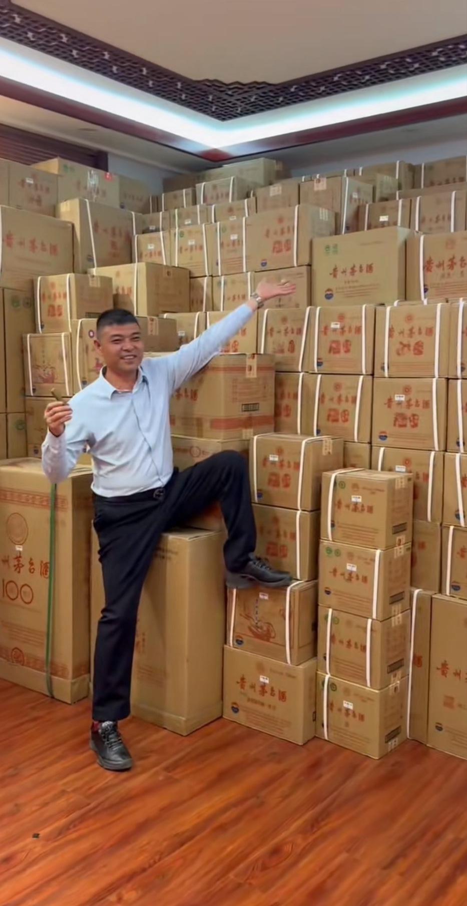 北京坤哥的榜一大哥,也是坤哥的铁粉。在北京坤哥河北燕郊的接待室,直接坐在了坤哥的茅台堆上,那表情跟刘姥姥进大观园一模一样,满眼都是藏不住的惊讶。 一屋子整箱茅台堆得满满当当,普通人看一眼都觉得震撼,更别说亲身坐在上面了。大哥全程眼神都透着新奇,估计也是头一回见这么大排面,彻底看呆了,其实这只是坤哥茅台的冰山一角。 不愧是坤哥的排面,光是这一屋子酒,就足够让人惊叹。也难怪大哥这副模样,换谁来到这接待室,怕是都得被这阵仗给镇住,妥妥的实力展示,看着就过瘾。 那么问题来了,北京坤哥为什么不把成箱的茅台放到地下室或者库房里边,非得摆在客厅里边呢? 北京坤哥 飞天茅台酒