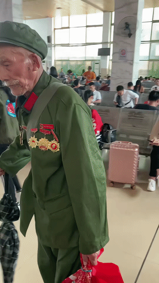 网友在火车站意外偶遇一位独自乘火车出行的老兵爷爷。 这位老人虽然年纪已经很大了,但是他看起来精神矍铄,状态很好。 也不知道他这是要去哪里? 是去子女家走亲戚?还是去看望老战友?退役军人候车区