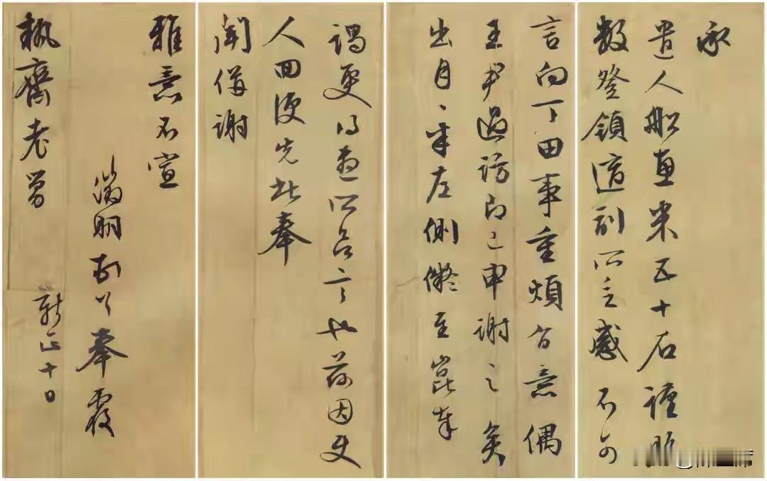 文徵明《致执斋书札》很有故事。这是他写给老舅执斋的信。当时他深陷田产纠纷,生计艰难,老舅派人送五十石大米,他在第一封信里直说“适副所乏,感不可言”,还打算月半后去昆山当面致谢。第二封信则是答谢另一笔援助,还提到家中琐事,满是对亲人的牵挂。 书法上,它和文徵明常见作品不同,尽显自然美。笔法灵动,有晋唐遗韵;结体自然,字形随情绪大小变化;气韵温润,法度严谨又意态生动,完美诠释“书为心画”,不愧是千古墨宝。