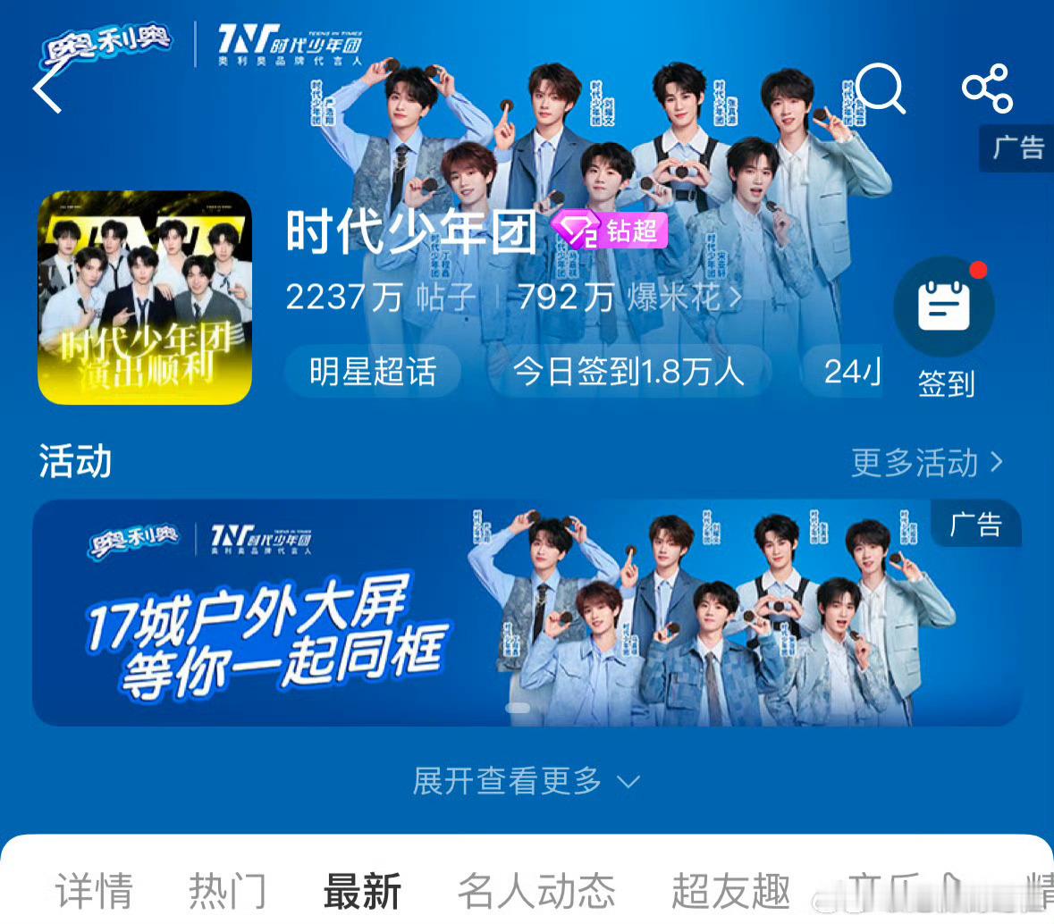 奥利奥官宣时代少年团为品牌代言人,微博开屏,团超话背景都是奥利奥!