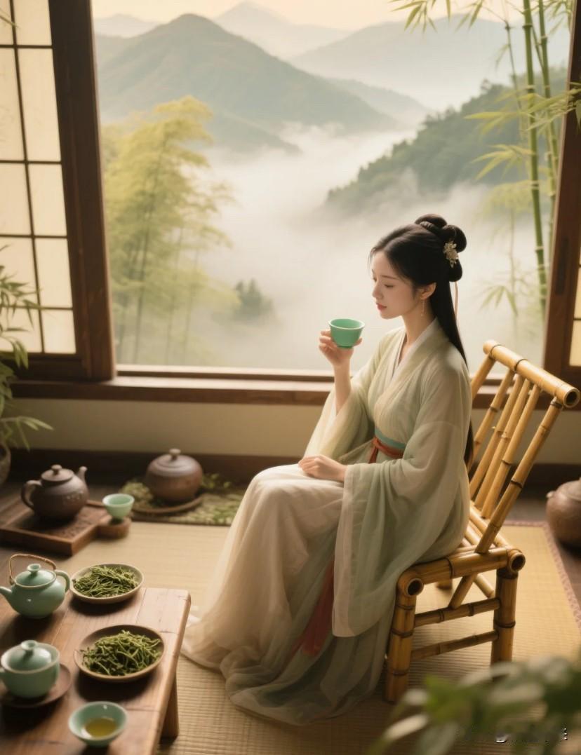 上联:慢品清茶观万象 下联:? 下联:静听细雨悟尘心
