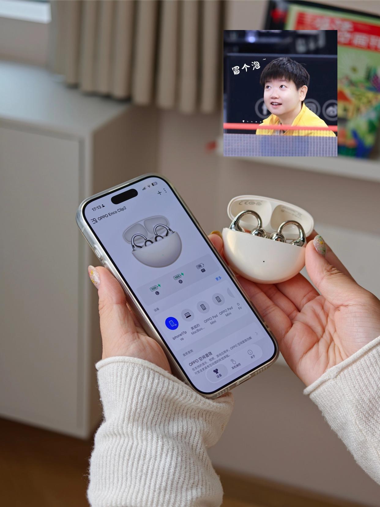 就想炫耀一下第一时间拿到的莎莎同款耳机 快递小哥你是我的神😭 昨晚下单,今天嗖的一下就送到家了 耳机拆开质感比我预期还要好,小金环颜值真的巨好看。 还是喜欢OPPO Enco Clip 2这种耳夹耳机 戴上轻飘飘的几乎没啥存在感, 比我之前用的airpods舒服多了 我用iPhone试了一下,连接也超丝滑 弹窗都正常,苹果互联很省心。 还有莎莎专属定制弹窗,满满的仪式感, 音质也比较通透,日常听歌完全够用。 首发849拿下感觉挺值的! 孙颖莎 莎莎同款 耳机推荐 我的私藏好物 数码大实话 苹果配件 佩戴舒适 快递给力