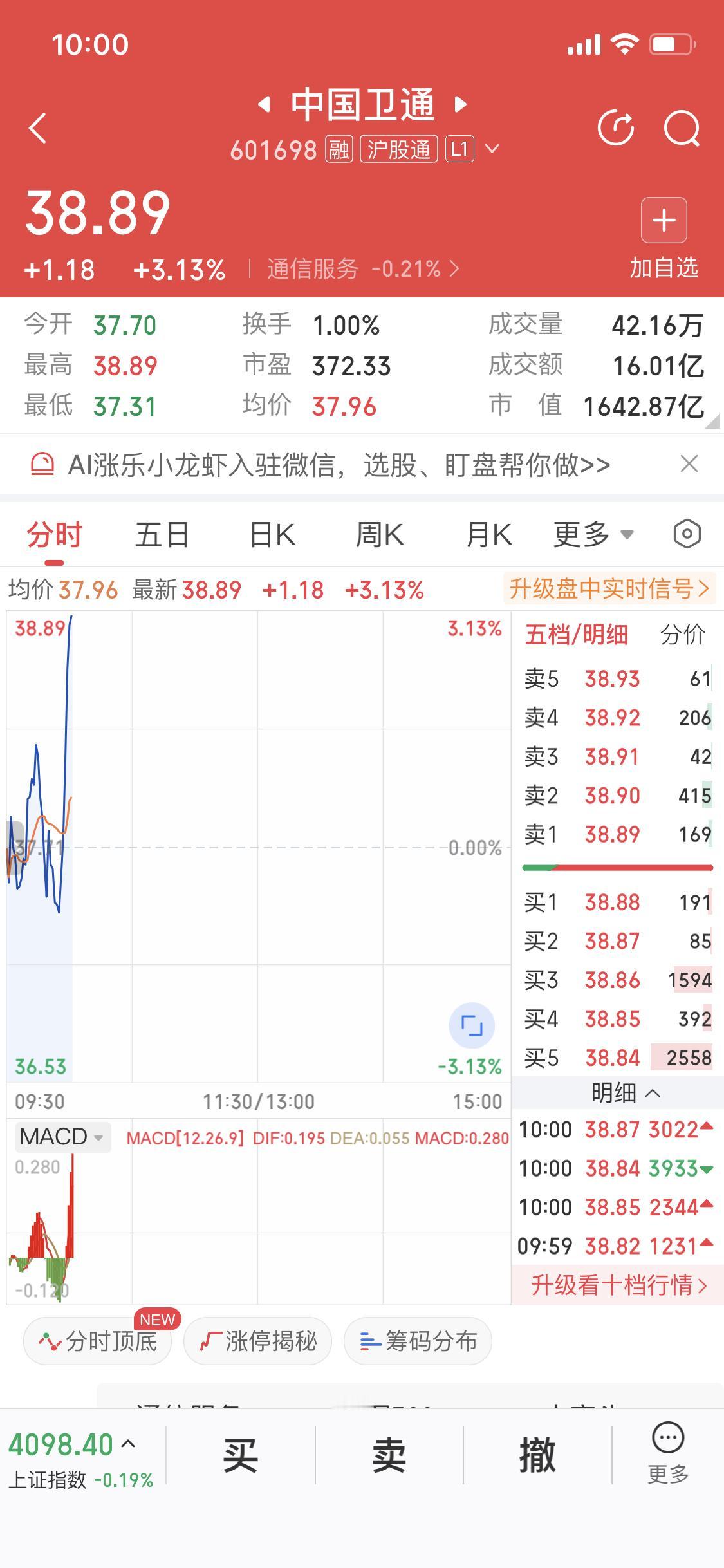 早盘那阵下跌 把你洗出去了吗 我是一动没动 坚定持有商业航天 中国卫通下杀之后 一顿猛拉 股市确实磨练人的心智 不恐慌不动摇 坚定看多 中国卫通