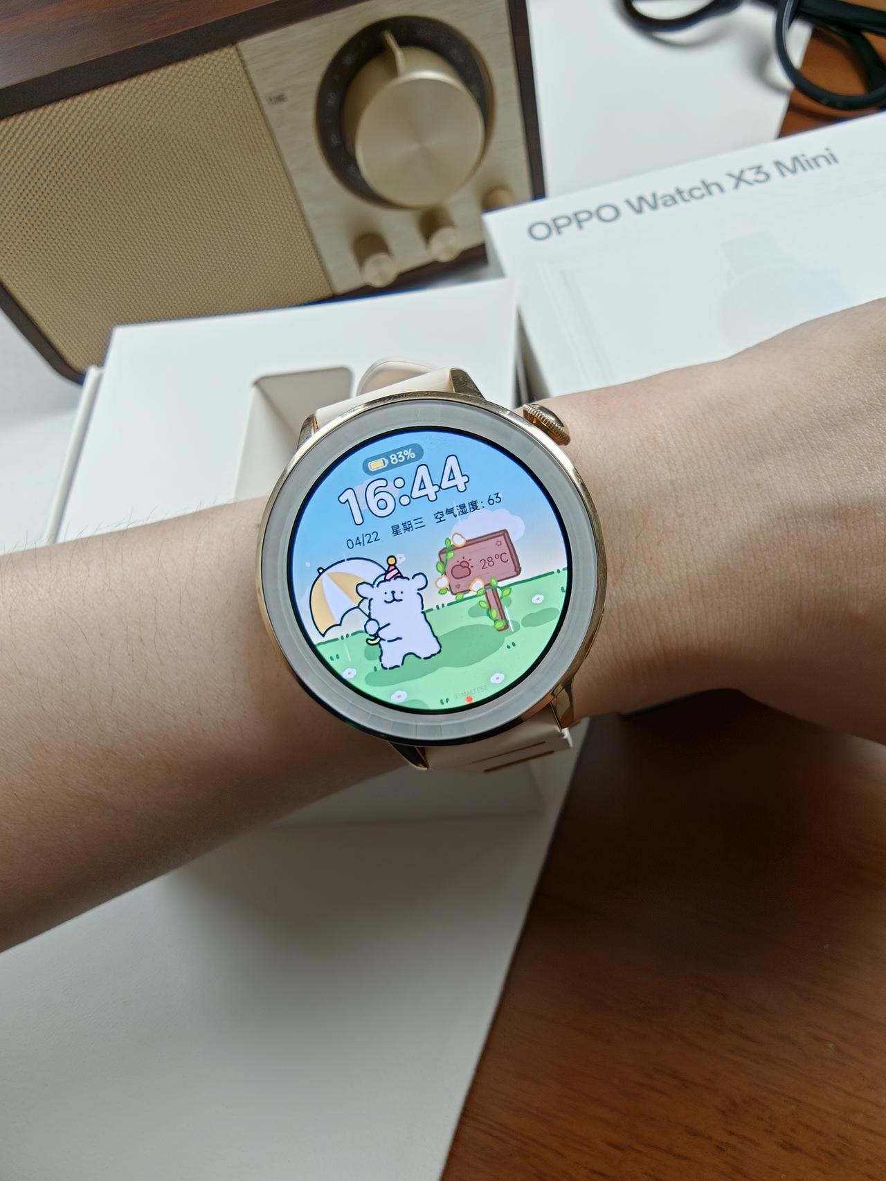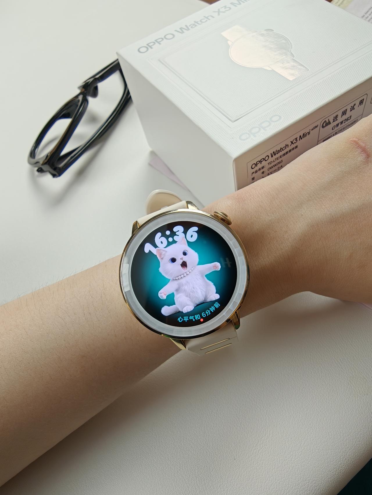 谁懂这速度!第一时间拿到了莎莎同款小金表 昨晚才看完发布会,今天快递小哥就直接来敲门了! 这物流速度真的绝了 第一时间就把莎莎同款小金表OPPO Watch X3 mini 戴在手上! 我的手腕是比较细的,本来还怕戴智能手表会显得笨重,结果完全不会! 这个小金表超级轻盈贴合,戴着打字一上午都没什么感觉。 最让我惊喜的是这个猫猫表盘! 它居然能根据你身体不同的状态切换不一样的小猫,感觉手腕上养了一只专属的电子宠物 上班摸鱼看一眼,真的太治愈了! 今天刚戴上还没怎么试其他功能,好像说还有很多好玩好用的功能,我先替你们戴几天测一测,有什么想问的姐妹评论区见!👇