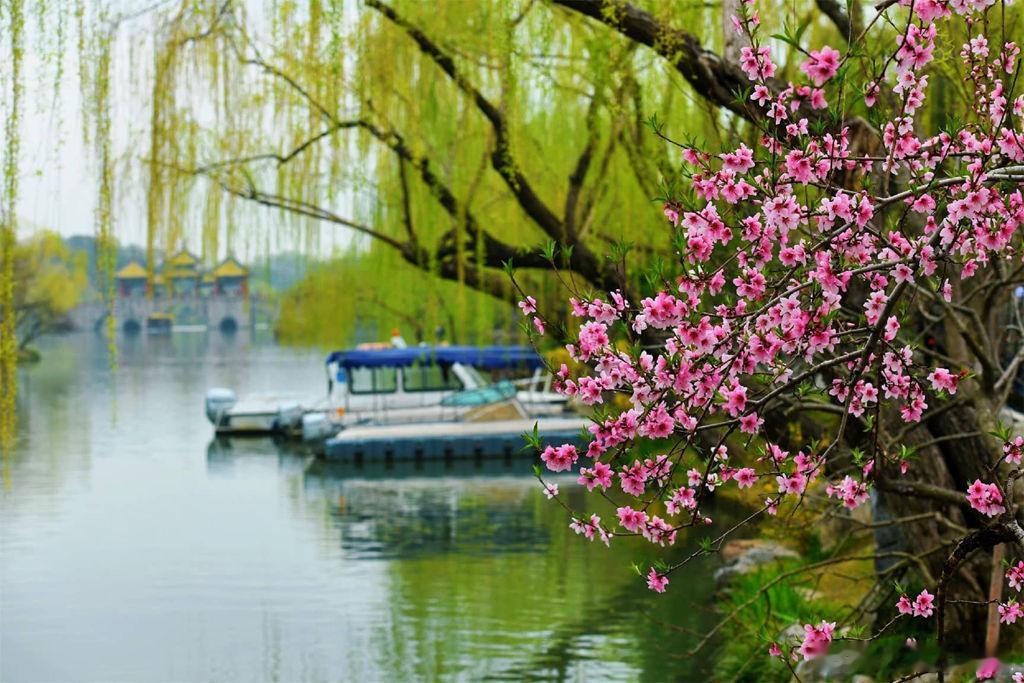 【美丽家乡 江苏扬州——桃云染霞 春风写意 春日的江苏扬州,桃花竞相绽放,微风轻拂而过,花瓣微微颤动,仿佛绚烂的云霞飘落在人间。中华美景欣赏