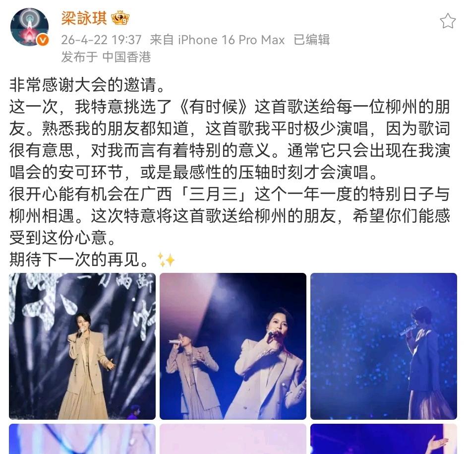 嘿嘿,梁咏琪在广西柳州唱《有时候》这首歌时的穿搭,你们觉得好看吗? 我觉得很好看!同色系穿搭,其实很挑人,穿不好会一言难尽,驾驭得了的人会很好看,一如梁咏琪。 西装配半身裙,营造同色系既视感,特别的有气质,时尚不失优雅,这样的穿搭配上这样的短发,穿出了梁咏琪的本色,越看越好看,魅力十足。 不得不说,好久不见了梁咏琪,唱歌还是那么好听,穿搭还是那么在线,人还是显得那么年轻美丽,爱了爱了。 各位,你们爱这样的梁咏琪吗? 梁咏琪 明星穿什么