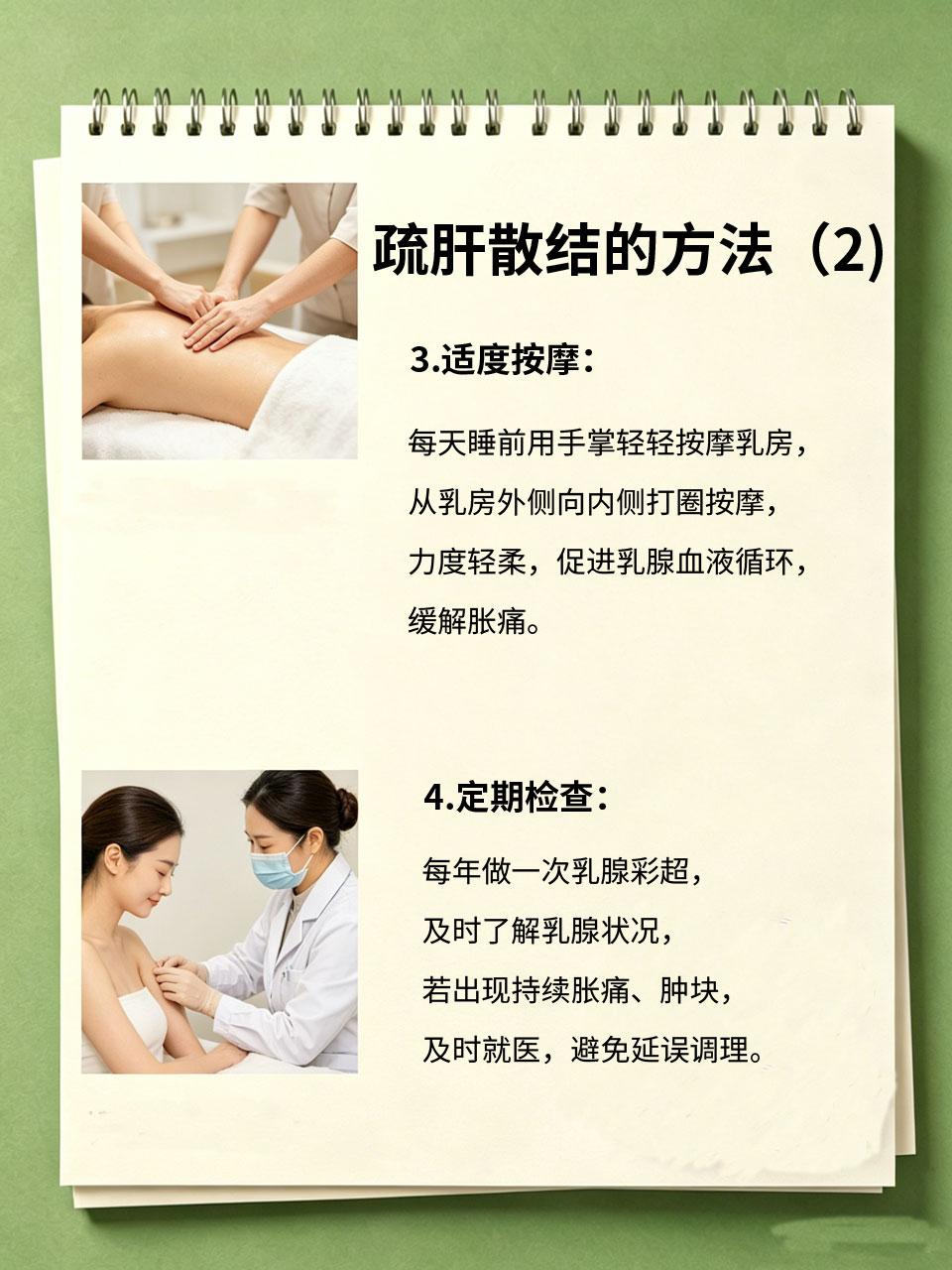 乳腺不舒服别大意,疏肝散结,远离增生困扰 很多女生会出现乳腺胀痛、刺痛,尤其是经期前后,这可能是乳腺增生的信号,多由肝气郁结、情绪不畅导致。分享4个疏肝散结的方法,日常坚持,远离乳腺困扰,守护乳腺健康❤️ 1.情绪调理😊 2.饮食调理🥗 3.适度按摩🤲 4.定期检查🩺 乳腺健康需要长期呵护,尤其是情绪管理,保持肝气通畅,再配合饮食和按摩,就能有效缓解乳腺不适,远离增生困扰🛡️