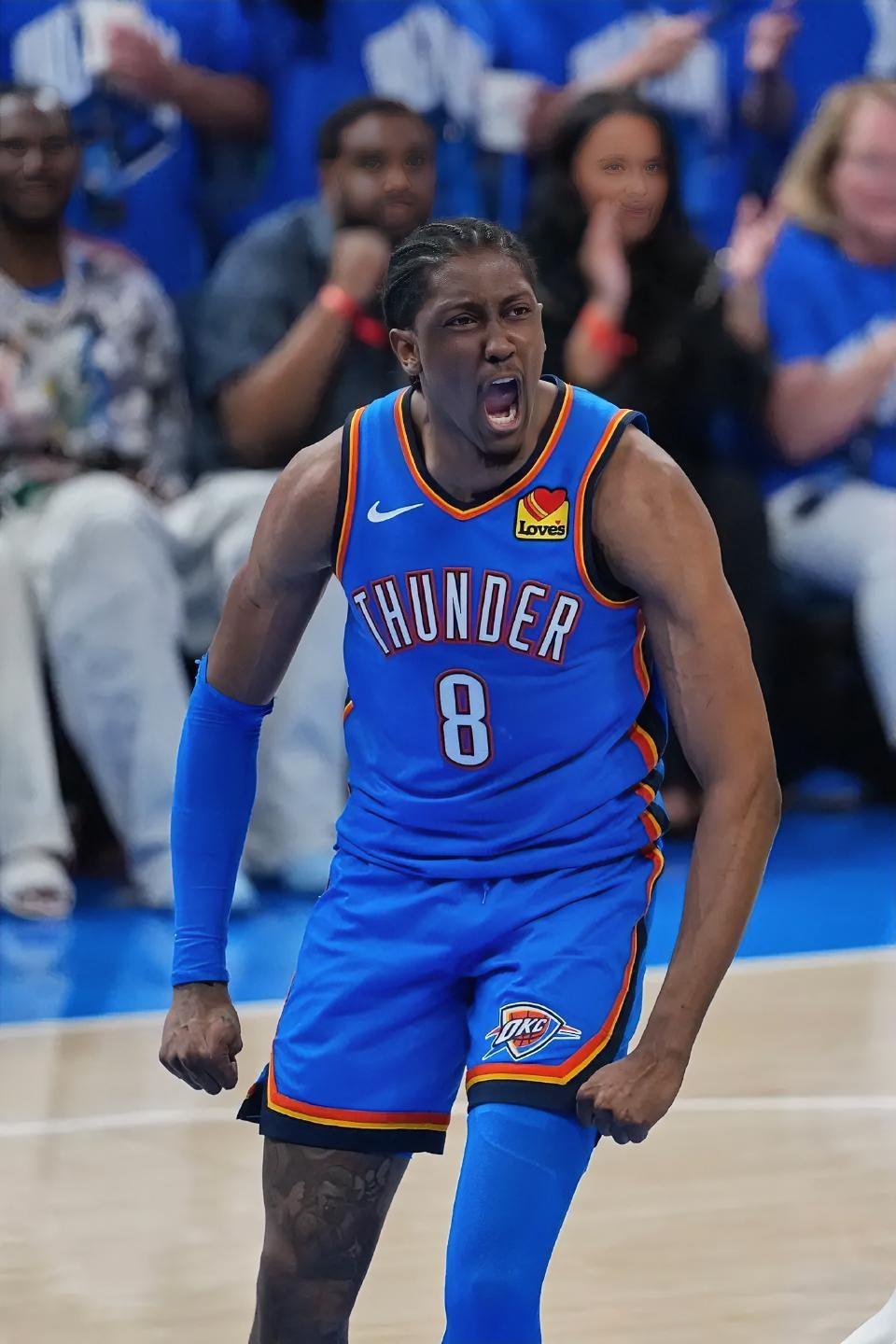 雷霆二当家杰伦威堪称进攻天才!在今日雷霆主场对阵火箭的季后赛首轮第二场比赛中,半场结束时,雷霆以65 - 57暂时领先。杰伦·威不仅在防守端表现卓越,进攻端更是尽显天才本色。 半场结束,杰伦威首发出战16分钟,投篮8投7中,其中三分球3投2中,罚球5罚3中,狂揽19分,还贡献了1个篮板、2次助攻和1次抢断,他在场上的正负值达到了+10。 实事求是地讲,杰伦威在进攻端的表现丝毫不逊色于亚历山大,若给他更多球权,本场比赛他完全有可能砍下40+!