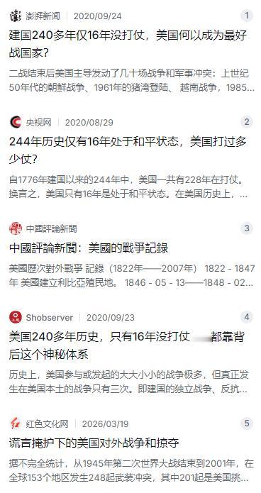 美国好战,灭亡了吗?俄罗斯好战,灭亡了吗?以色列好战,灭亡了吗?中国向来不好战。可试想,秦汉唐元若没有雷霆手段,又怎能一统天下?蒋介石一味妥协退让,不正是因此才丢掉了东北三省吗? 麻烦看官老爷们右上角点击一下“关注”,既方便您进行讨论和分享,又能给您带来不一样的参与感,感谢您的支持! 翻开美国历史你会发现,这个国家从1776年建国到现在,两百多年的时间里竟然有228年都在打仗。这是什么概念?就是说美国建国后的漫长岁月里,约93%的时间处于战争状态,真正安安静静没有打仗的年份加起来才16年。别搞错了,这说的可不是美国本土发生的战争。实际上,美国本土正经八百打过的仗就三次:独立战争、第二次反英战争、南北战争,其他绝大多数战争都是在别国领土上打的。朝鲜战争、越南战争、海湾战争、阿富汗战争、伊拉克战争,还有入侵格林纳达、空袭利比亚、出兵巴拿马,这些都发生在离美国本土几千上万公里之外。仗打了这么多,美国灭亡了吗?不但没灭亡,反而靠着战争扩张领土、掠夺资源,一步步登上了世界霸主的宝座。二战结束后,美国直接挑起的武装冲突占到全球总数的81%,试图推翻50多个外国政府,粗暴干涉至少30个国家的民主选举。你说它好战不好战?但人家就是越打越强,从建国时北美东海岸的十三块殖民地,一路打到横跨两洋的超级大国。 再看看俄罗斯。苏联解体那会儿,俄罗斯的日子有多难过?经济崩盘,国家乱成一锅粥,北约还趁机一步步往东推进,都快把防线推到俄罗斯家门口了。可俄罗斯人在这种被逼到墙角的情况下,怎么办?打!1994年第一次车臣战争虽然没完全解决问题,但1999年第二次车臣战争,俄军狠狠出了一口恶气,牢牢掌控了车臣。2008年格鲁吉亚突然出兵南奥塞梯,俄罗斯果断反击,几天之内就把格军打退,还顺手承认了阿布哈兹和南奥塞梯独立。2014年克里米亚危机,俄军出动迅速,在西方还没来得及反应过来之前就已经控制了局面。后来出兵叙利亚帮阿萨德政府稳住阵脚,在伊斯兰国快要瓦解的时候协助叙利亚政府军收复失地。这些年西方制裁一轮接一轮,可俄罗斯还是那个俄罗斯,照样在国际舞台上该打就打,该出手就出手。你要问俄罗斯好战不好战?当然好战。但它灭亡了吗?没有。俄罗斯人用强硬手段保住了自己的战略生存空间,虽然经济上承受了不小压力,但国家不但没解体,反而在复杂局势中站得更稳了。 以色列就更典型了。1948年5月14日宣布建国的第二天,阿拉伯联军就打上门来。刚宣布建国、连正规军都没来得及组建的新国家,面对埃及、约旦、伊拉克、叙利亚、黎巴嫩五国联军,换谁都觉得这日子过不下去了。可以色列人硬是挺了过来,在联合国的停火斡旋中争取到四个星期的喘息时间,全世界的犹太人纷纷支援,资金、武器、人员迅速集结,组建起国防军,然后反手就打回去,夺回了联合国分治决议划给巴勒斯坦的土地。1956年第二次中东战争、1967年第三次中东战争、1973年第四次中东战争,还有后来持续不断的大小冲突,以色列周围全是敌人,打仗成了家常便饭。1967年的六日战争以色列只用了六天就占领了埃及的西奈半岛、叙利亚的戈兰高地、约旦河西岸和加沙地带,国土一下子扩张了三倍。一个弹丸小国,天天在火药桶上过日子,你要是手软,早就被周围的邻居撕碎了。以色列没有妥协退让,而是以强硬对强硬,用一次次铁血杀伐活了下来,到今天不但没有灭亡,还成了中东地区唯一的发达国家。 说到这儿,肯定有人要问了:照你这么说,是不是谁好战谁就能生存?当然不是。中国历来不好战,但中国历史上那些开疆拓土的王朝,哪个不是凭铁血手段打出来的?公元前230年,秦王嬴政亲政后,采纳了“远交近攻”的战略,从灭韩开始,十年时间先后灭掉赵、魏、楚、燕、齐六国,结束了春秋战国五百多年诸侯割据的局面,建立了中国历史上第一个大一统王朝。汉朝开国也不容易,刘邦在秦末乱世中起兵,经过四年楚汉战争击败项羽,于公元前202年建立汉朝。后来汉武帝时期,面对北方匈奴的长期威胁,果断派出大军北击匈奴,收复河套地区,打通河西走廊,让汉朝的国威远播四方。唐朝更是以武立国,从太原起兵到统一全国,一路征战不断,把大唐疆域推到了极盛。元朝就更不用说了,1206年成吉思汗统一漠北各部,随后三次西征,铁骑踏遍中亚、西亚直至东欧,灭西夏、灭金朝、灭南宋,最终建立起横跨欧亚的庞大帝国。这些王朝如果没有雷霆铁血的手段,别说开疆拓土了,连能不能站住脚都是问题。 所以,这事儿咱们得讲明白。好战本身不是啥好东西,但在生存面前,光靠妥协退让是换不来和平的。美国好战没灭亡,反而称霸世界;俄罗斯好战没灭亡,反而在围堵中守住了底线;以色列好战没灭亡,反而在强敌环伺中活得挺硬气。中国历来不好战,可秦汉唐元哪个不是靠着铁血手段打出一片天地的?而蒋介石一味妥协,到头来丢了东北,丢了民心,连自己的政权都保不住。