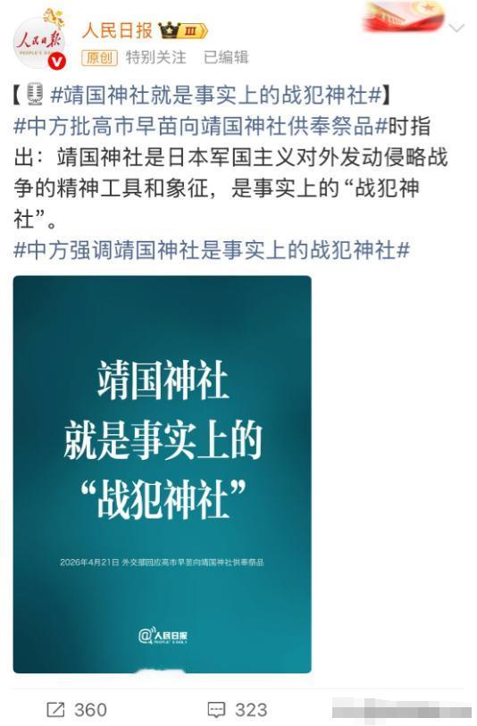 中国向全世界发出明确声音:日本靖国神社就是战犯神社。 4 月 22 日,我们当着全世界的面,把话挑明了 —— 靖国神社就是日本军国主义的精神工具,是实打实的战犯神社,这话没半点含糊。 不是随便说的,有铁证!靖国神社里供着 14 个二战甲级战犯,还有两千多个乙丙级战犯,这些人手上沾满了亚洲人民的鲜血。 1978 年 10 月 17 日,这帮战犯的灵位被偷偷塞进靖国神社合祭,这事曝光后全世界都骂,可神社死不悔改,就这么一直供着。 头号战犯东条英机,发动太平洋战争的罪魁祸首,1948 年被绞死,现在倒好,成了日本政客眼里的 “英雄”,这简直是天大的笑话。 还有松井石根,南京大屠杀的元凶,30 多万同胞死在他手下,这样的恶魔居然被供奉,日本人的良心是被狗吃了吗? 土肥原贤二,九一八事变的策划者,在中国搞了多少阴谋诡计,害死多少人,现在倒成了靖国神社里的 “神”,这世界还有天理吗? 14 个甲级战犯里,13 个都直接参与侵华战争,对中国人民犯下滔天罪行,就这,日本还敢说自己没侵略过中国? 更气人的是,4 月 21 日和 22 日,日本首相高市早苗连续两天向靖国神社供奉祭品,还派大臣去参拜,这是赤裸裸地挑衅。 这个高市早苗也不是第一次干这事了,2014 年至今拜鬼超过 10 次,对这些战犯的崇拜简直到了走火入魔的地步。 东京审判都过去 80 年了,那些战犯早就被钉在历史耻辱柱上,日本政客却非要把他们扒下来当宝贝,这不是脑子有病是什么? 日本一边供奉战犯,一边还修改 “防卫装备转移三原则”,允许出口武器,这是要走军国主义老路的节奏啊,全世界都得警惕。 这是公然为侵略历史翻案,为战争罪行洗白,为军国主义招魂,这种行为我们坚决不能忍。 有人说日本政客参拜是个人自由,这话纯属放屁!你拜自己祖宗没人管,可你拜的是屠杀了数千万人的战犯,这就是挑战全人类的良知。 日本政客的每一次参拜,都是在往受害者家属的伤口上撒盐。 韩国也看不下去了,和中国一起谴责日本,毕竟朝鲜半岛当年也被日本侵略了几十年,他们的痛苦一点不比我们少。 国际社会也该醒醒了,别再对日本的右翼行为睁一只眼闭一只眼,一旦军国主义死灰复燃,受害的可是全世界。 日本总说自己是和平国家,可一个天天给战犯磕头的国家,有什么资格谈和平? 东京审判的判决书还在,历史的真相还在,日本想篡改历史,门都没有!中国就是要把话说明白,让全世界都知道靖国神社的真面目。 我们不是要揪住历史不放,而是要日本正视历史,承认错误,只有这样,才能真正和亚洲邻国搞好关系,不然永远都是孤家寡人。 那些为战犯招魂的日本政客,你们摸摸自己的良心,晚上睡得着觉吗?不怕那些被你们祖先害死的冤魂来找你们吗? 中国发出的声音,不仅是为了我们自己,更是为了全世界的和平与正义,谁要是敢挑战历史定论,我们就跟谁没完。 靖国神社就是战犯神社,这是铁打的事实,谁也别想歪曲!日本要是还有点脸,就赶紧把那些战犯的牌位请出去,给亚洲人民一个交代。 历史不会说谎,正义不会缺席,那些为侵略战争洗白的人,终将被钉在历史的耻辱柱上,遗臭万年! (每天更新,欢迎关注,喜欢文章的可以帮忙点个赞留条评~) 对此大家有什么看法?