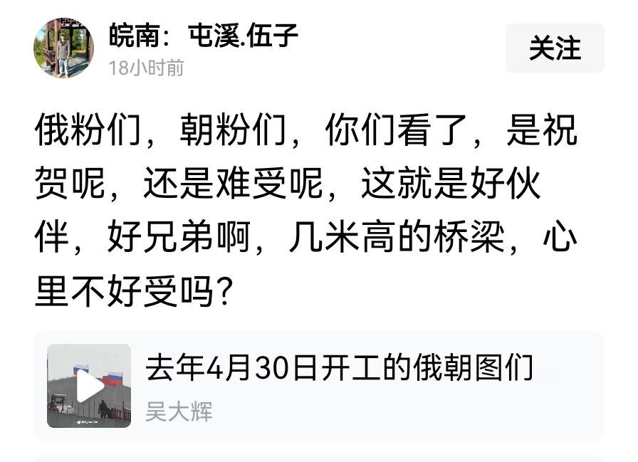 我们只适合和俄、朝提什么无上线,全天候,牢不可破,背靠背、万年长。绝不可提桥高、桥低伤感情的事。