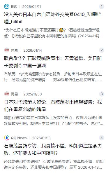 石破茂对着1.2亿日本人问出了一个扎心问题:和中国开打之前,先看看家里有多少“中国制造”。 麻烦看官老爷们右上角点击一下“关注”,既方便您进行讨论和分享,又能给您带来不一样的参与感,感谢您的支持! 大概在2025年11月那会儿,已经卸任首相的石破茂上了一个电视节目,对着镜头说了句让不少日本人后背发凉的话。他问台下的观众,也相当于在问全日本1.2亿老百姓:你家里,真的能找出一件中国制造都没有的东西吗?这话说出来,现场估计没人答得上来,因为谁家不是从锅碗瓢盆到电器手机,满满当当都是“Made in China”。石破茂当时还特别点名了几个领域,说医药品、稀土、旅游这些,中日关系必须好好重视,这不是说要对中国唯命是从,而是日本自己得先把脑子搞清楚了。 石破茂这人,当过防相,被右翼看成鹰派,但骨子里其实是个务实派。他做事求稳,主张中日经济合作,可惜在现在的日本政坛里,这种态度反而被极右翼当成了“背叛”。到了2026年1月,他又在路透社的采访里表态,公开支持高市早苗,说人家没必要撤回涉台言论,中日关系反正也回不去了。表面上是挺高市,实际上明白人都看得出来,这更像是在给自己留后路,两边都不得罪。 不管石破茂怎么站队,他那个“家里有多少中国制造”的问题,确实扎在了日本最疼的地方。日本经济对中国供应链的依赖,真不是嘴上说说的,那是嵌在骨子里的。根据日本政府2024年版的《通商白皮书》,有1406个品类的商品,超过一半的进口额来自中国。这是什么概念?从你家里用的笔记本电脑、空调,到医院里救命的抗生素,中国都是主要供给源。日本有个首席经济学家叫田代秀敏,他说得很直白,日本几乎所有的产业,供应链都跟中国连着,一旦出问题,企业就难以为继,严重点说就是“事关生死”。 拿稀土来说吧,这玩意儿是高端制造业的命根子。从2010年钓鱼岛事件之后,日本就喊着要减少对中国的依赖,十几年过去了,效果怎么样呢?2024年的数据,日本稀土进口总量里,仍有71.9%来自中国。用在电动车电机上的那些重稀土,比如镝、铽,日本几乎就是100%靠中国供应。日本汽车业也急啊,丰田的永磁电机需要的铽,库存只够撑3个月,一旦断供,混动车型就得停产。更尴尬的是,日本这些年跑去澳大利亚、非洲搞矿山,去深海挖泥巴,折腾了半天,成本是中国的几倍甚至几十倍,短期内根本顶不上来。 再说医药这块,那就更吓人了。日本厚生劳动省自己都承认,像手术和肺炎治疗离不开的抗生素原料药,高度依赖中国。2026年1月,日本政府紧急从预备费里拨了71亿日元,专门用来补贴企业采购和储备抗菌药的原料药,就是怕万一哪天断了供,手术都得往后推。以前就出过这种事,2019年中国那边的厂商一停供,日本医院的药品就短缺,手术被迫延期。所以说,这根本不是杞人忧天,是实实在在发生过的教训。 不光是工业和医药,日本老百姓的吃喝玩乐,也离不开中国。旅游业就是最明显的例子。中国游客是日本最大的海外客源,消费力还强。2025年前9个月,中国大陆和香港游客贡献了日本入境消费总额的30%左右。要是这个客源断了,日本的零售业、地方经济都得跟着垮。影视产业也一样,现在日本电视台拍高成本的电视剧,都得先把在中国市场卖出去当成盈利的前提,要是对华出口受阻,损失可不是一星半点。 那反过来看,中国对日本的依赖又是什么程度呢?田代秀敏说了个大实话,中国经济体量已经是日本的将近5倍,两国对彼此的需求根本不对等,日本依赖中国更多。从贸易数据上也看得出来,日本对华出口占它GDP的大约3.6%,而中国对日出口只占咱们GDP的0.81%。2025年前9个月,日本从中国进口了1306亿美元的东西,对中国出口只有922亿美元,光逆差就有383.7亿美元。说白了,日本需要中国的东西过日子,中国没了日本,虽然也难受,但远没到伤筋动骨的地步,咱们的供应链多元自给,东南亚、欧洲、美洲都能补上。 这就造成了一个非常危险的局面。日本一些政客,跟着外部势力瞎起哄,动不动就要跟中国硬碰硬,却完全不看看自己家里到底几斤几两。石破茂就是看透了这一点,才说出那句扎心的话。他在2025年年底就警告过,日本要是重演当年那种“明知不敌还要开战”的蠢事,最后受害的只能是普通老百姓。 最让日本产业界头疼的是,他们搞了十几年的“去中国化”,结果发现根本绕不开。当年喊着“China Plus One”,把工厂搬到越南、印度,结果这些地方的原料和设备,上游还是得从中国进。全球稀土精炼产能,中国占了92.3%,日本就算自己挖出了矿石,精炼提纯的技术和成本也卡在那儿。这就像一个死循环,口号喊得震天响,产业链的根还是扎在中国。
