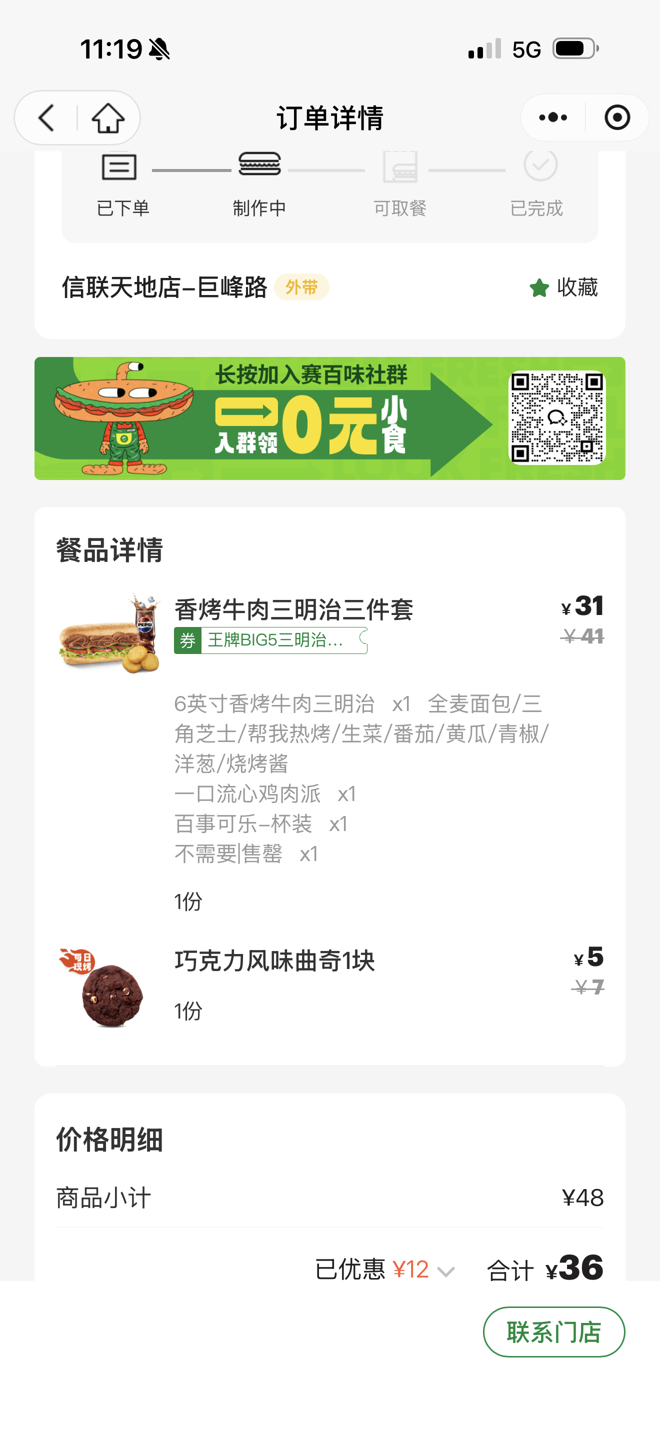 点了一个赛百味,结果店员忘记帮我加热了…