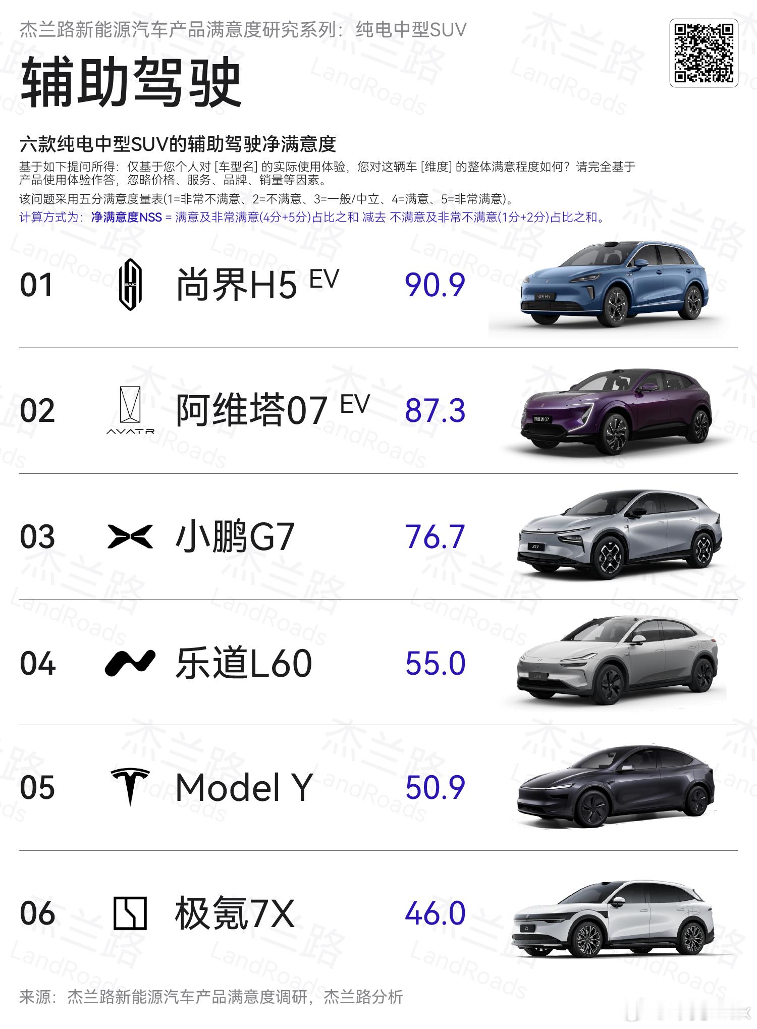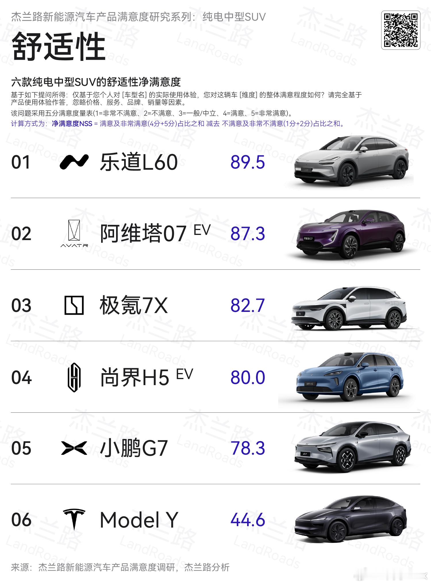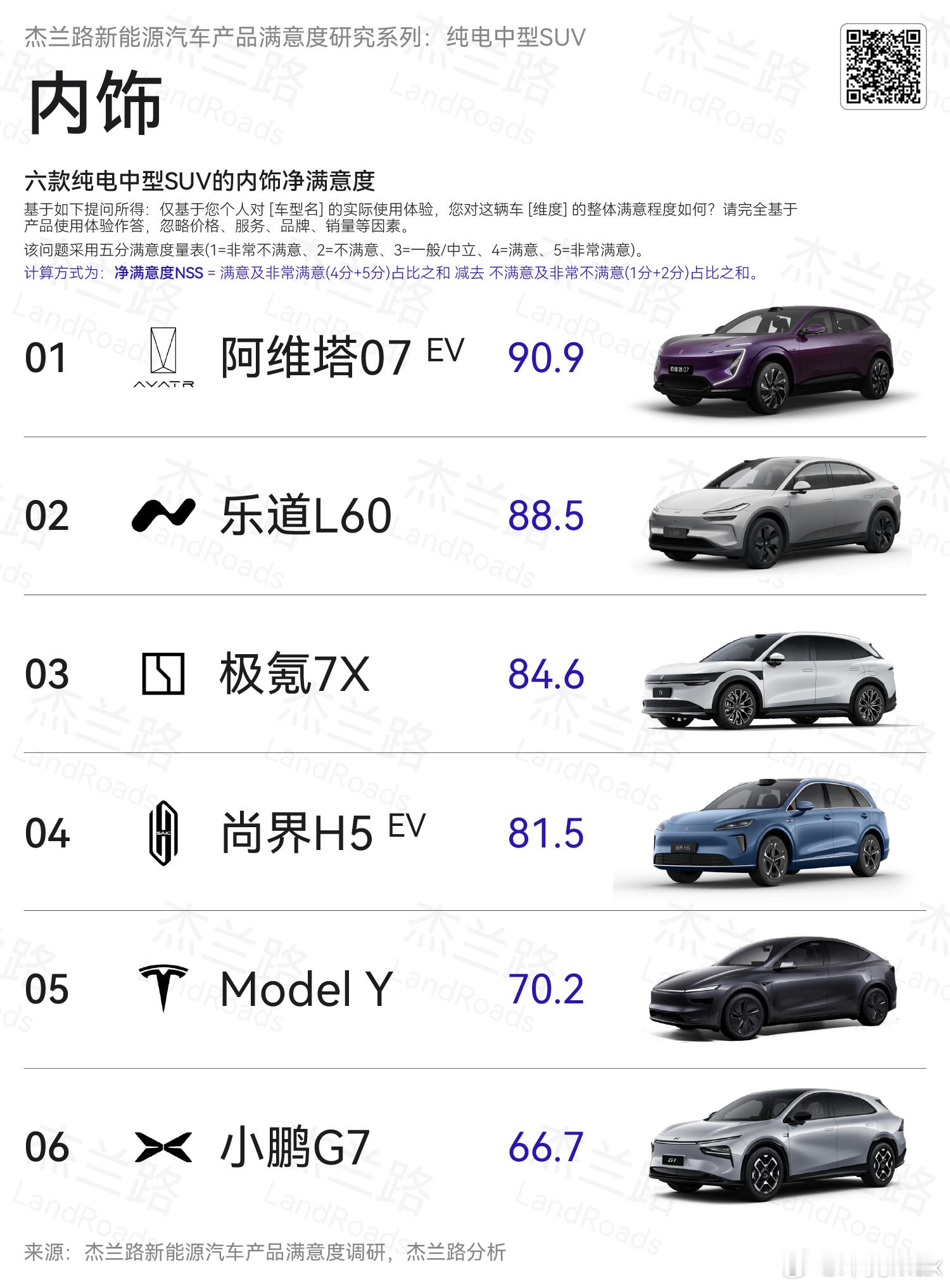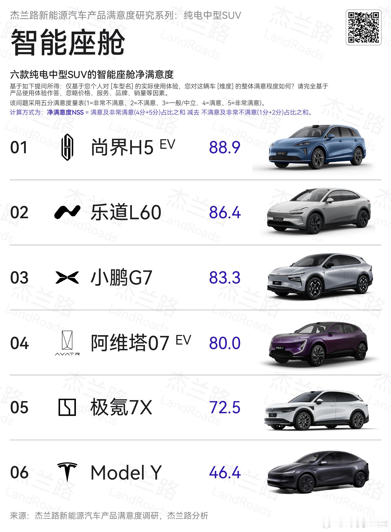 杰兰路调研了20万价位的六款SUV的用户满意度: