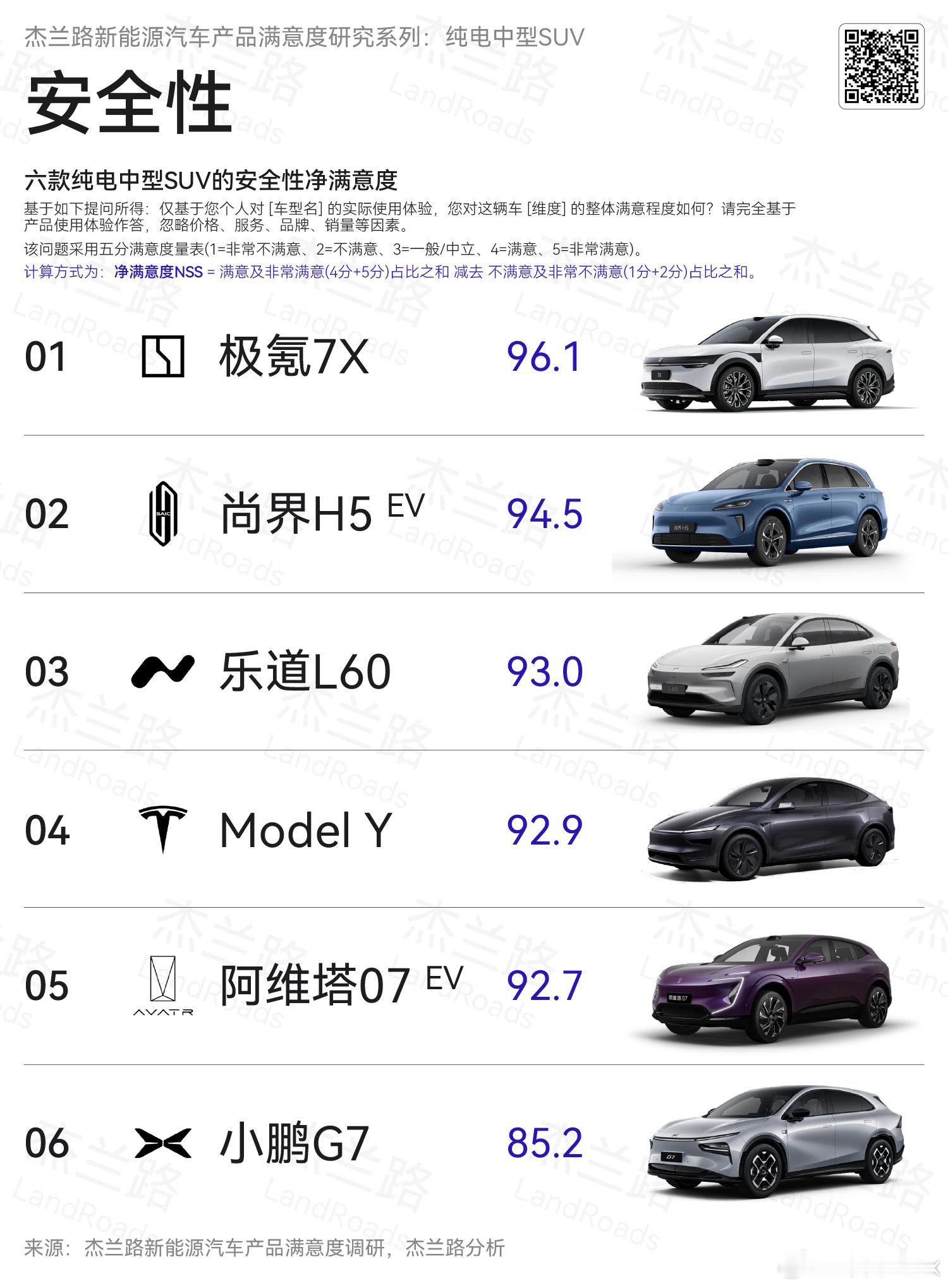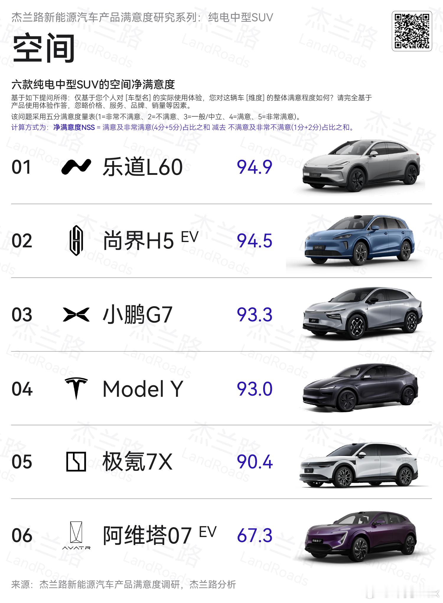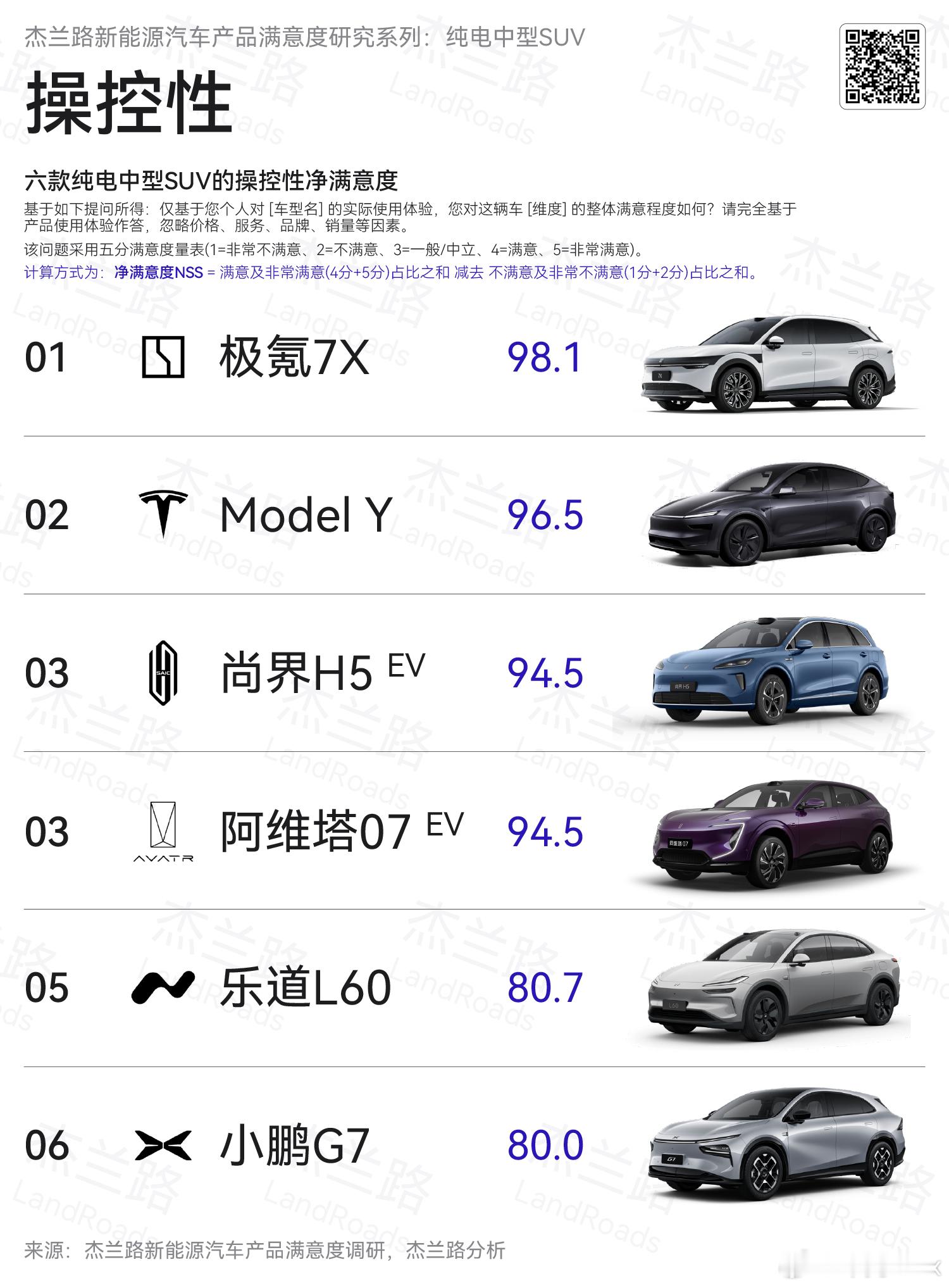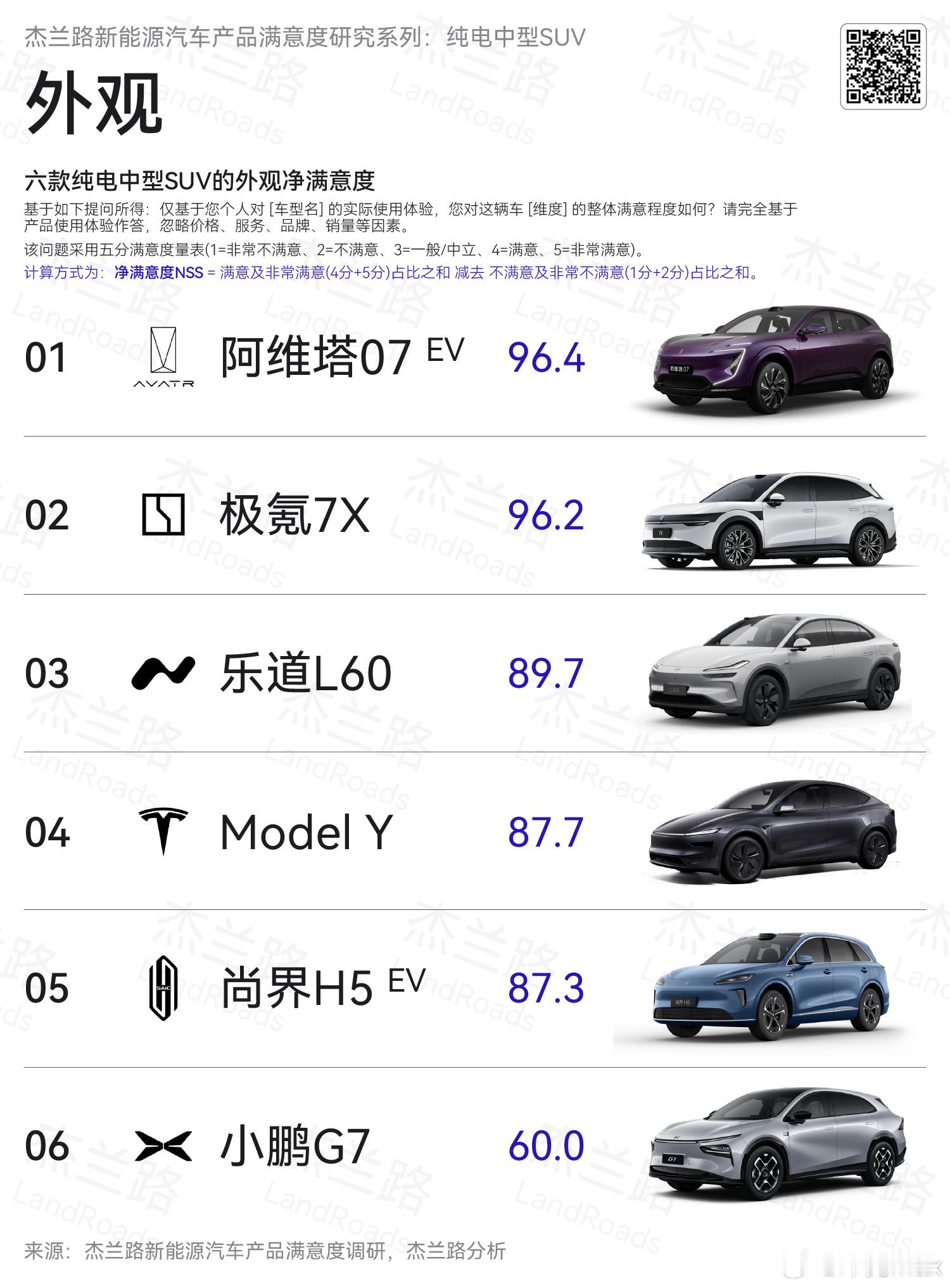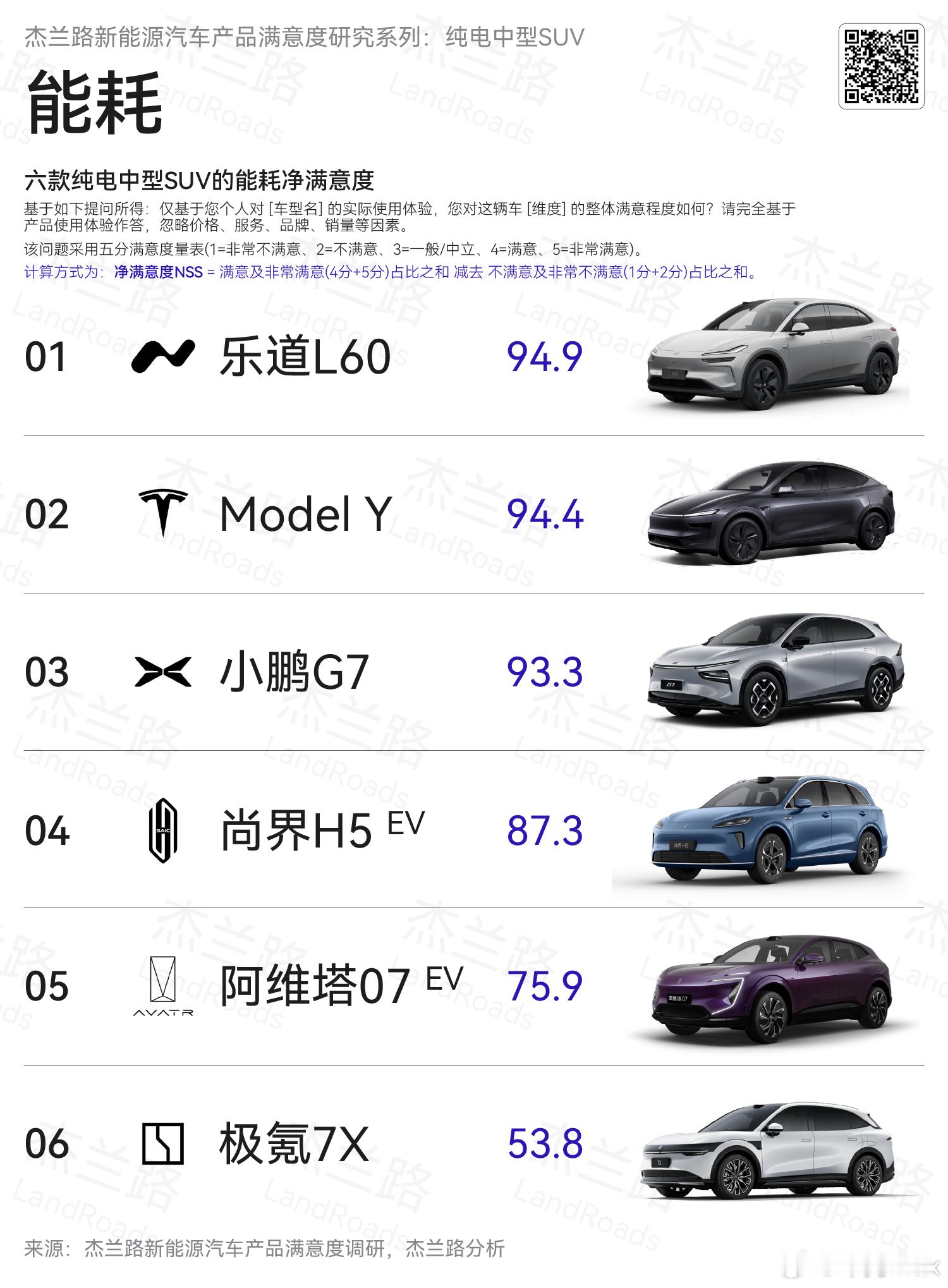 杰兰路调研了20万价位的六款SUV的用户满意度: