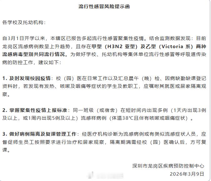 深圳流行性感冒来了,大家还是要注意。看到龙华和南山也有不少学校的学生请病假,有些