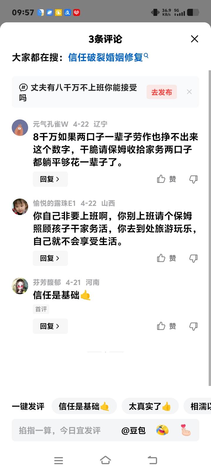 河南郑州八千万拆迁款丈夫躺平七年,妻子崩溃哭诉:我要的不是钱,是一个家! 当婚姻被巨额存款压垮,当陪伴在巨额财富面前变得一文不值,河南郑州这对夫妻的故事撕开了多少家庭光鲜外表下的隐痛。妻子小燕在镜头前哭到颤抖,丈夫晓峰那句“我有八千万上啥班”像一把刀,扎进了无数已婚人士的心。 七年时间,一个女人独自扛起养家育儿的重担,白天在超市收银台前重复着枯燥的工作,晚上回家面对的是冷锅冷灶和两个哭闹的孩子。而那个本该与她并肩的男人,却心安理得地躺在财富堆砌的温柔乡里,用八位数的存款堵住了所有沟通的通道。 外人看来这是凡尔赛式的烦恼,可真正经历过婚姻的人才懂,那种“丧偶式育儿”和“守寡式婚姻”的窒息感。小燕要的从来不是丈夫出去赚多少钱,而是深夜回家时有一盏灯为她而亮,孩子哭闹时有一双手能替她分担,是在漫长婚姻里能感受到的温度和依靠。 晓峰的悲剧早在童年就已埋下伏笔。被母亲支配的人生让他失去了自我,巨额拆迁款成了他逃避现实的完美借口。他以为用金钱就能买断作为丈夫和父亲的责任,却不知道婚姻里最珍贵的从来不是银行卡上的数字,而是彼此扶持的真心。 这场调解没有赢家。小燕眼里的光在七年等待中逐渐熄灭,晓峰在自我构建的财富堡垒里越陷越深。两个孩子在不完整的家庭氛围中成长,他们或许永远无法理解,为什么爸爸有钱却不愿意陪他们玩一个下午。 多少婚姻正经历着同样的困境?一方在物质世界里拼命奔跑,另一方在精神世界里彻底躺平。当沟通只剩下“钱够花就行”,当陪伴被贴上“没必要”的标签,这段关系早已名存实亡。婚姻从来不是一个人的战场,它需要两个人共同经营。 小燕的眼泪流进了无数人的心里。那些在婚姻里孤独挣扎的女性,那些用工作逃避家庭责任的男性,都能从这个故事里看到自己的影子。我们追求财富自由,却忘了情感也需要自由流动;我们积累物质资本,却忽略了关系资本的投入。 调解结束时的承诺能否兑现,我们不得而知。但这个故事像一面镜子,照出了当代婚姻最残酷的真相:比贫穷更可怕的是心穷,比缺钱更致命的是缺爱。当一个人把银行卡余额当作婚姻的全部筹码,他早已输掉了最珍贵的东西。 八千万能买来豪宅名车,却买不来深夜的一个拥抱;能保证衣食无忧,却保证不了孩子成长路上父亲的陪伴。小燕站在十字路口的迷茫,何尝不是这个时代无数家庭的缩影?婚姻这场修行,需要的是两颗共同成长的心。 (来源:洵哥根据河南广播电视台民生频道《百姓调解》栏目报道及网络热议事件整理) 婚姻真相 家庭责任