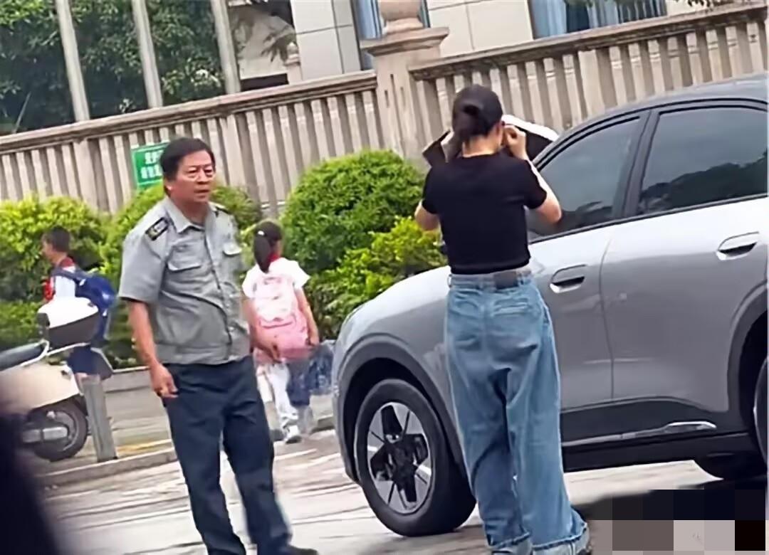 反转个毛线!女司机违停接孩子,保安让她跑,她肯定不肯走,嘴巴肯定不干净,保安在反骂那女的!接下来就看到了整个视频