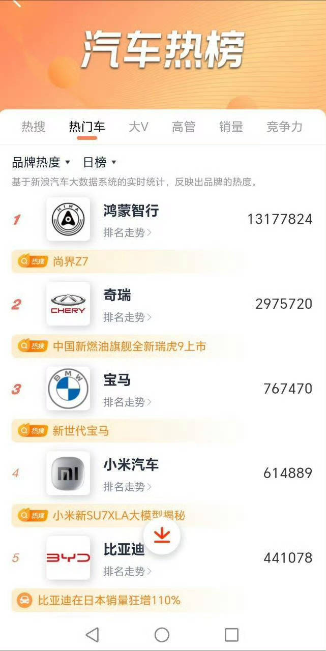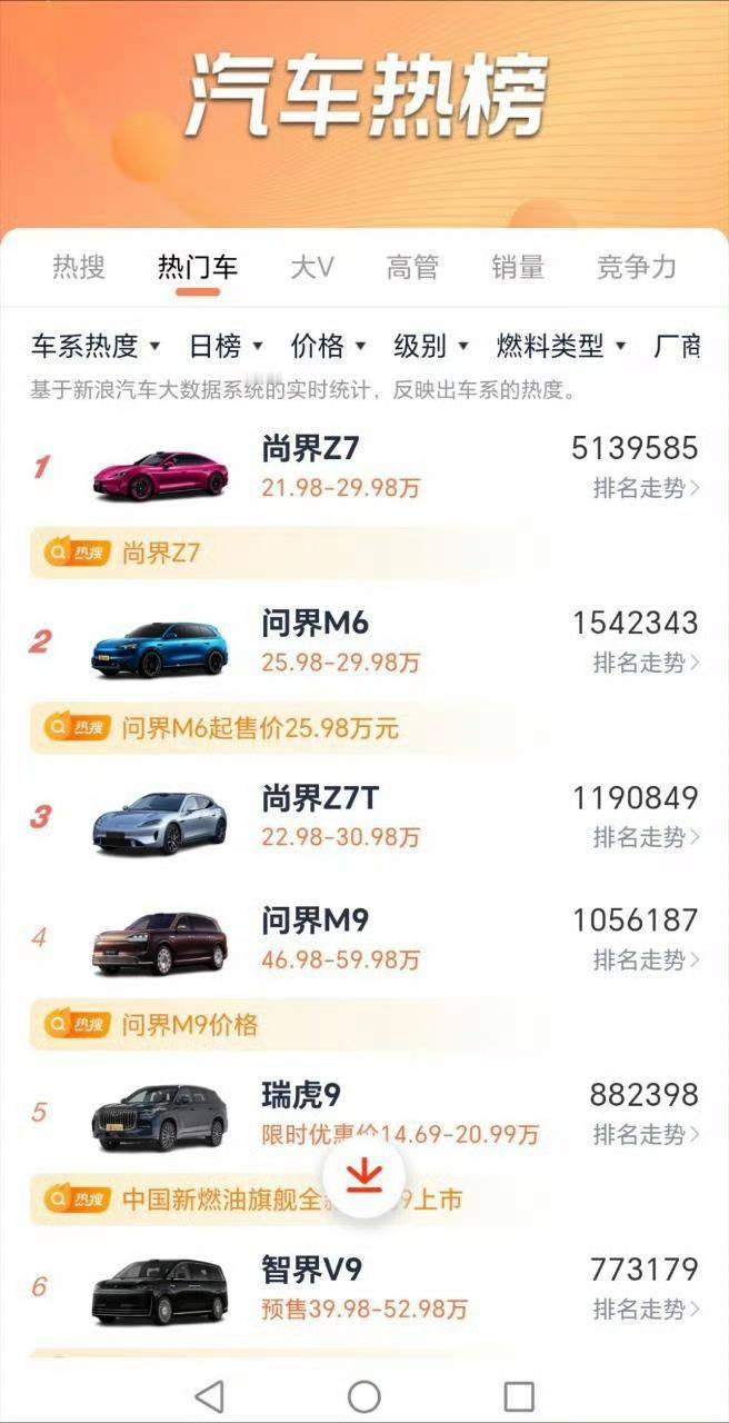 尚界Z7大定27分钟破12000台 昨日汽车热榜更新,鸿蒙智行和尚界Z7直接断层碾压!鸿蒙智行热度领先第二名1100多万,尚界Z7领先第二名400多万,一骑绝尘。其实昨天有八家车品牌同步开发布会,全网目光却全被尚界牢牢锁定,核心原因就是肖战。以往明星代言汽车,从未有过如此现象级的热度与声量,顶流国民演员号召力就这么强。