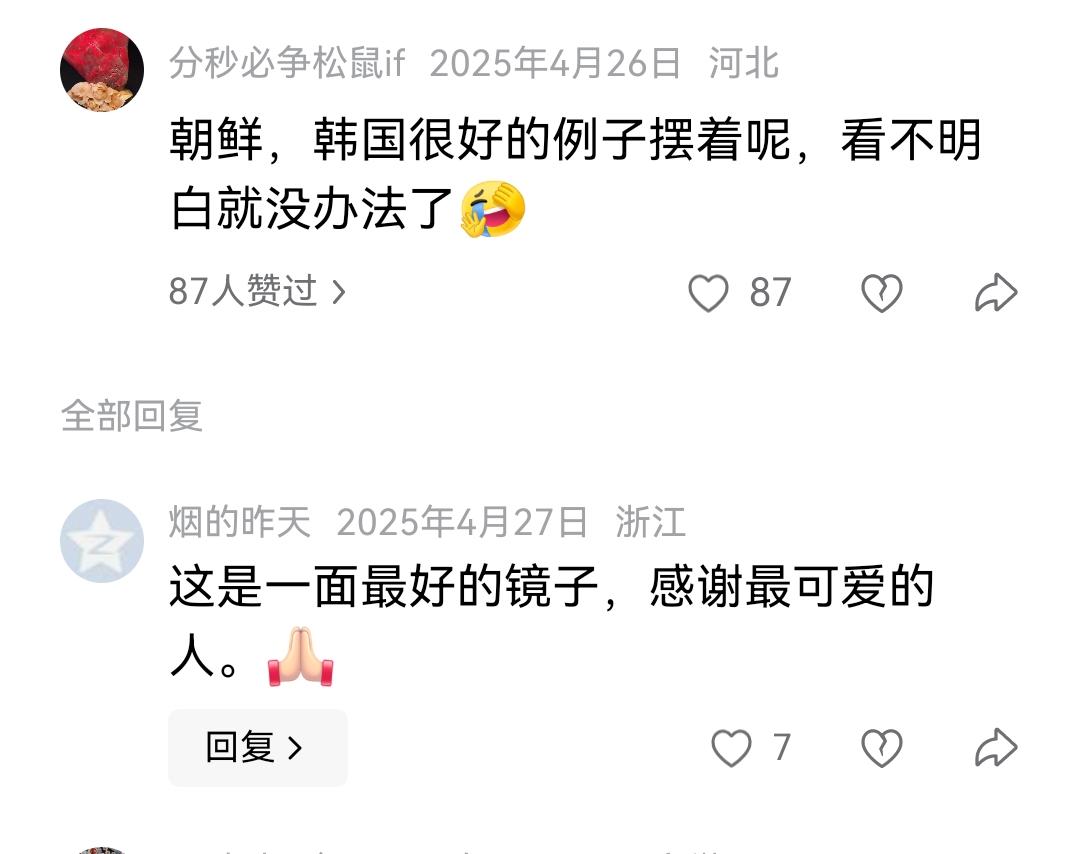 如果是数字人或者是蛙仔,我倒是能理解,因为双方是对着干的。 如果是一个有的是中国身份证的人说这种话,那简直就是丧良心,我觉得应该把他揪出来,死了都应该把它拖出来鞭尸,包括几个点赞的。 没有最可爱的人,他连上网的机会都没有,甚至他可能都没有机会识字,甚至是早已经台死腹中了。 是人就有立场,但是你如果身为中国人,不站在自己国家立场的话,这样的人就不配是人。 网络环境是时候严厉的打击一波了,清一清。像这种言论真的不应该存在。