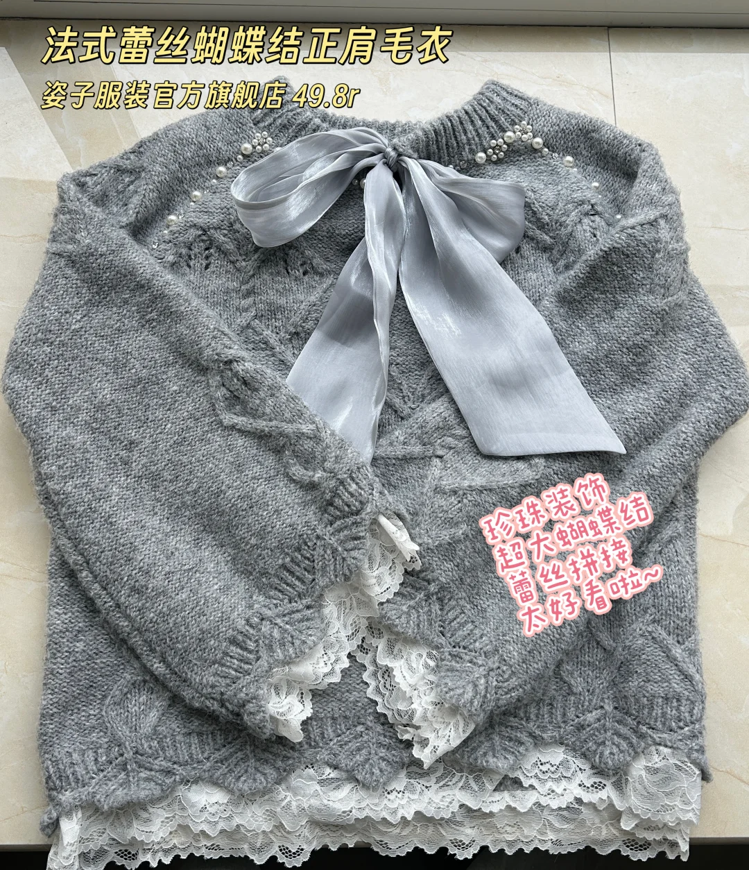 珍珠装饰 超大蝴蝶结 蕾丝拼接 太好看啦~