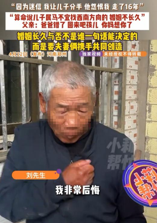 父亲三次拆散儿子恋情!河南郑州,小刘谈过三段恋爱,父亲就干预了三次。第一个,父亲嫌女方家太远,不同意。第二个,他看不上,一直从中阻挠。第三个,两人已经准备谈婚论嫁,父母特意去算了算,说女方方位不合,又逼着小刘分了手。三次感情,全都没能走到最后。小刘在家看不到希望,最后选择离家出走。这一走,就是十六年。这期间,他没有和父母通过一次电话,刻意断了所有联系。直到最近,父亲才觉得后悔,四处托人打听,终于得知儿子曾在上海居住。可他匆匆赶过去,房东却告诉他:儿子早就搬走了,临走前还特意交代——不要让家里人找他,他不会原谅。 说起河南郑州刘大爷家这档子事,真是让人听了半天缓不过劲来,一个当爹的,愣是凭着一己之力,把亲生儿子的三段姻缘全给搅黄了,最后逼得儿子离家出走,整整16年音讯全无。 现在老头儿岁数大了,知道后悔了,哭天喊地想见儿子一面,可换来的却是儿子一句冷冰冰的“永不原谅”。 这事还得从小刘年轻那会说起,当年小刘也是个踏实懂事的孩子,到了谈婚论嫁的年纪,谈了第一个女朋友,姑娘是陕西的。 俩人谈得挺投机,本想着带回家给父母把把关,没想到刘大爷一看户口本就炸了,他的理由在那个年代听着挺“实在”,说外地的太远,过个年回趟家费钱又费事,以后麻烦断不了。 小刘那时候还没什么社会经验,跟家里争辩了几句没结果,最后为了不让爹妈生气,咬咬牙跟人家分了。 过了段日子,小刘又谈了一个,这次他长记性了,专门找了个郑州本地的,离家近得抬脚就能到。 本以为这回刘大爷总该没话说了吧?谁知老头儿见了姑娘后,背地里跟儿子撇嘴,嫌人家姑娘模样长得太一般,还扯出一套歪理,说什么“基因不好会祸害下一代”。 这种话简直是往人心窝子上捅刀子,小刘心里憋屈得不行,可最后还是没能顶住压力,第二次妥协了。 要说前两次是小打小闹,这第三次可真是断送了父子俩最后的缘分,那时候小刘认识了一个平顶山的女孩,姑娘人品好、懂事,两家人离得也不算远。 这回俩人是奔着结婚去的,感情特别稳固,两家大人都坐在一起商量好了婚期,连摆酒席的钱都准备得差不多了。 可就在这节骨眼上,刘大爷不知道听了谁的撺掇,非要跑去算命,算命的随口胡诌了一句,说小刘属马,找西南方向的女孩方位不合,这婚结了也过不长。 就为了这虚无缥缈的一句话,刘大爷死活不让儿子结婚了,小刘这次是真的爆发了,跟父亲大吵了一架。 可刘大爷更狠,一看硬的不行就来软的,拿自己的身体当筹码,寻死觅活地逼儿子分手,一边是眼看就要成家的幸福,一边是亲爹的性命要挟,小刘被逼进了死胡同,最后只能眼睁睁看着这段婚事告吹。 在那之后,小刘整个人都变了,变得沉默寡言。他可能在想,自己明明是个成年人,为什么连选择跟谁过日子的权利都没有? 在这个家里,他看不到一点自由和希望,于是在一个再平常不过的日子里,他谁也没打招呼,收拾了几件旧衣服,悄没声地走了。 这一走,就是16年,16年里,他就像从这个世界上消失了一样,没给家里打过一个电话,没寄过一分钱。 刘大爷两口子从一开始的生闷气,到后来的心慌,再到最后的绝望,这些年把眼泪都流干了,他们发动所有亲戚去找,可小刘像是铁了心要跟过去断个干净,谁的消息都不回。 直到最近,刘大爷才通过各种渠道打听到,儿子这些年一直在上海打拼,老头这下坐不住了,揣着满心的愧疚赶到上海,想当面跟儿子认个错,求他回家养老。 可等他好不容易摸到儿子的住处,却扑了个空,房东告诉他,小刘听风声说家里人要来,早就搬走了,临走时留下话:这辈子都不想见他们,也永远不会原谅。 现在的刘大爷坐在镜头前哭得老泪纵横,说自己知道错了,以后再也不管儿子了,只要儿子回来就行。 可这道歉晚了整整16年,这16年里,儿子在外头吃了多少苦、受了多少罪,心里的伤口结了多少层疤,哪是一句“我错了”就能抹平的? 这事在网上传开后,大家的看法挺一致,很多人说,这当爹的控制欲实在太可怕,总觉得孩子是自己的私有财产,打着“为你好”的幌子,干的却是伤害孩子最深的事,父母可以给建议,但绝对不能当“判官”。 说到底,亲情是需要尊重的,不是靠血缘就能肆无忌惮地消耗,小刘那16年的断联,其实是一种无声的抗争,也是一种绝望后的自我保护。 这起悲剧也给所有的父母提了个醒:孩子长大了,就得学会得体地退出他们的生活,真正的爱是成全,而不是把孩子拴在自己自以为是的“正确”里。 只可惜,这个道理,刘大爷明白得太晚了,付出的代价也太大了。 对此你怎么看? 信源:封面新闻