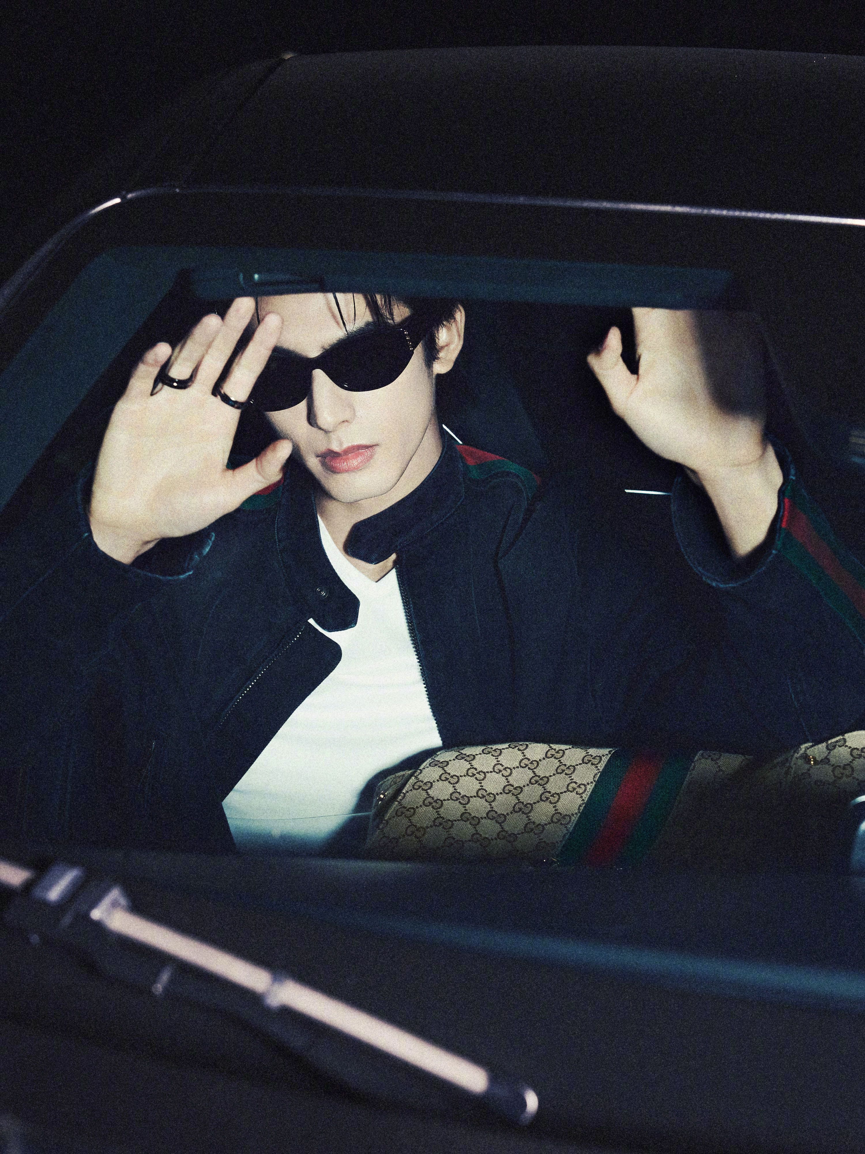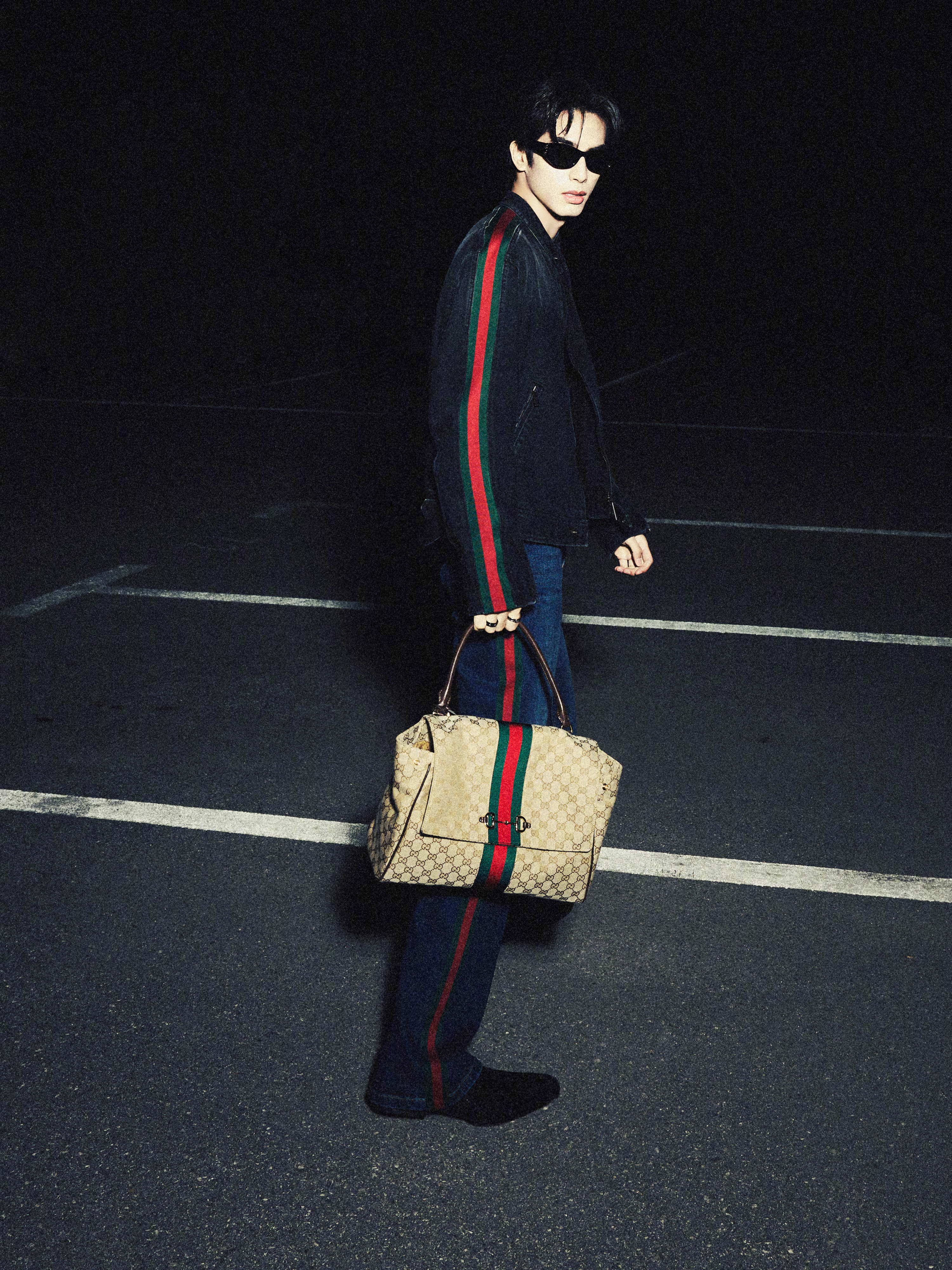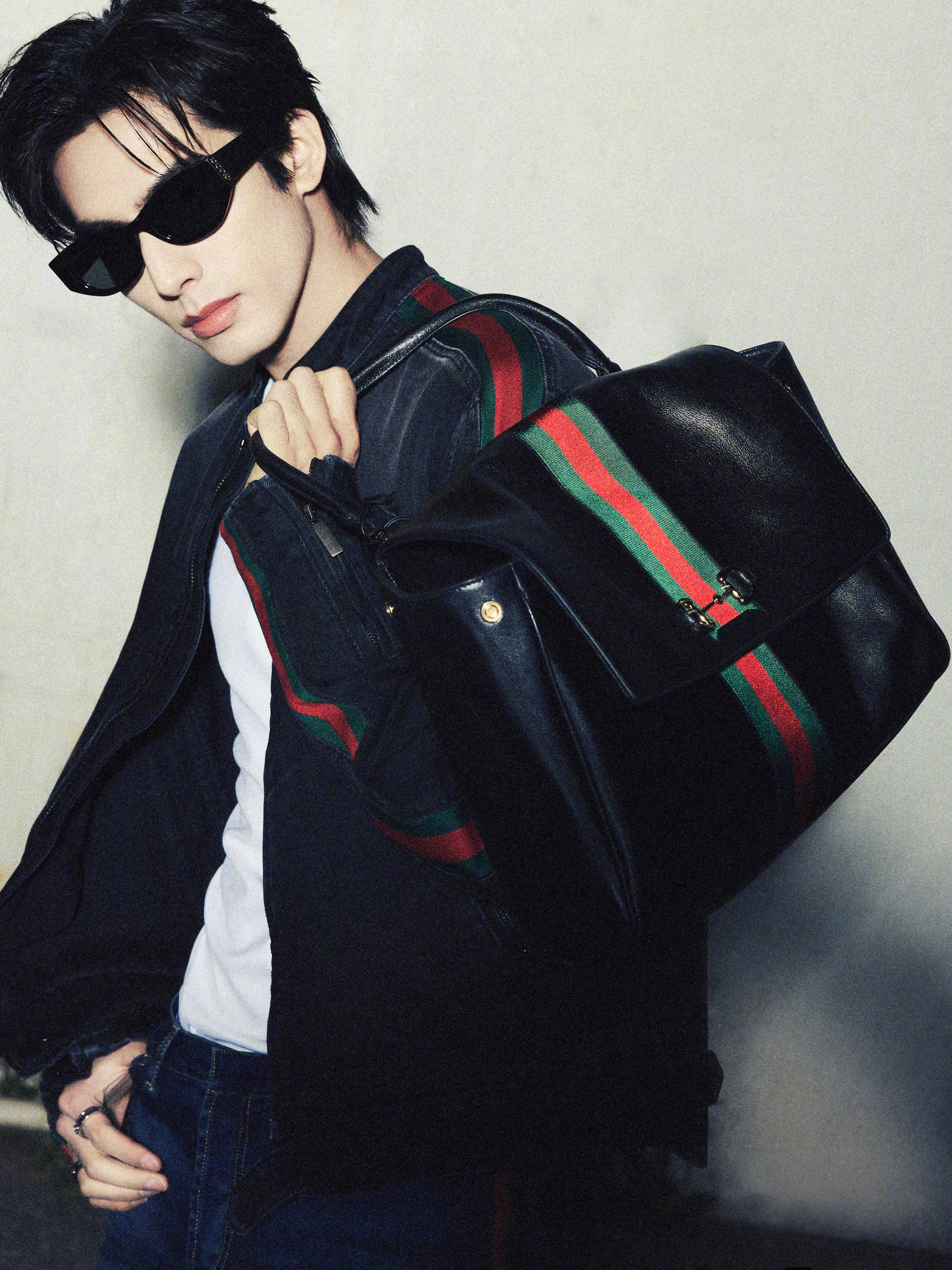 宋威龙 in Gucci 📸🕶️ 身着Generation Gucci系列,搭配Paparazzo系列包袋,红绿织带贯穿服饰间,随性又时髦的气场,俨然一副超模架势,一组高清图分享~ 时尚灵感解读