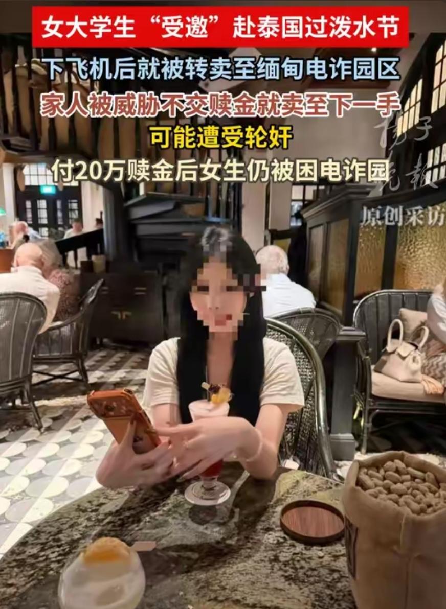 女大学生赴泰过泼水节被卖缅甸园区,家属发声:已转账20余万,对方一再拖延,拒绝放人 据扬子晚报报道:广东某高校一名女大学生近日受邀前往泰国参加泼水节,下飞机后随即被控制并转卖至缅甸电诈园区。其家人为营救已支付3万U币(折合人民币20余万元)赎金,却遭对方一再拖延,目前警方已立案调查,家人心急如焚。 目前,小阳虽能与家人保持手机联系,但家人始终不清楚她在园区内是否遭受虐待,内心极度担忧。小阳家人已于4月14日报警,警方已正式立案调查。小阳父亲表示,这是自己唯一的女儿,若女儿遭遇不测,整个家庭都将难以承受,恳请社会各界及相关部门紧急介入,尽快协助女儿平安回家。 这根本不是什么朋友邀约,就是电诈团伙精准猎杀大学生的教科书式犯罪,19岁的小阳4月10日从广州飞泰国,提前买好15日返程票,满心欢喜去泼水节,落地就被陌生人接走,两天就卖到缅甸三佛塔附近电诈园区 。这种“落地即控制”的操作,是缅北电诈集团成熟到令人发指的标准化流程,连机票都帮你买好,就为彻底卸下学生的防备心。 泰国泼水节成了电诈分子的“狩猎季”,边境人流暴增到平时的三倍,警方核查难度直线上升,他们就专挑这个节点下手,专盯没社会经验的年轻群体,作案成功率比平时高出70%。更恶心的是,他们还会在泼水节现场用掺了GHB“听话水”的水枪袭击游客,让受害者失去反抗能力,直接被掳走。 20万赎金在电诈园区眼里就是开胃小菜,央视2025年统计数据显示,68%交过赎金的家庭会被反复勒索,只有12%的人能通过官方渠道获救,小阳家私下转账,等于把女儿的命彻底交到魔鬼手里。这些畜生收了钱就开始编各种理由,封路、办手续、领导不在,转头就把人转卖到其他园区,再找下家继续要钱,不榨干家属最后一滴血绝不罢休。 缅北电诈园区就是现代奴隶制集中营,公安部通报的徐发启犯罪集团,14个园区22万平方米,里面全是被囚禁的受害者,每天工作16小时,完不成任务就用电棍打、关水牢,还有人被直接打断手脚 。小阳还能和家人通话,已经是这类案件里极其罕见的情况,大多数人质连通讯自由都没有,只能用模板化回复报平安。 跨境救援难如登天,从果敢老街到国门短短几公里就有5个关卡,分属不同武装力量控制,每个关卡都要花钱打通,中国警方不能直接跨境执法,只能靠中缅泰三方协调,流程慢到能拖垮家属的心理防线 。妙瓦底这些地方更是地方武装割据的“法外之地”,强攻会直接危及人质生命,只能靠谈判和施压,这让营救变得异常被动。 高校的安全教育就是形同虚设,反诈宣传年年搞,学生却把警方的警告当耳旁风,总觉得“这种事不会发生在我身上”。18-25岁年轻群体在缅北被困人员中占比持续上升,他们社交活跃、网络依赖度高,却连最基本的防骗意识都没有,轻易就相信“免费旅游”“高薪兼职”的鬼话。 所谓的“熟人”就是最致命的内鬼,很多受害者都是被同学、朋友甚至情侣出卖,这些叛徒拿10万到30万不等的人头费,把身边人推进火坑,事后还在泰国挥霍,回国才被抓。小阳遇到的就是这种“朋友”,从一开始就没打算露面,全程都是团伙安排的人接手,这是彻头彻尾的预谋犯罪。 支付赎金就是在养肥这些恶势力,让他们有更多资金去诱骗、绑架更多年轻人,形成恶性循环 。真正的自救是第一时间报警,联系中国驻当地使领馆,依靠官方力量营救,而不是傻乎乎地给犯罪分子送钱,让他们拿着你的血汗钱去残害更多家庭。 中缅泰联合清剿虽然拆除了630余栋涉诈建筑,押解1500余名嫌疑人回国,但电诈园区像韭菜一样割了又长,根本原因就是利益链条没被彻底斩断 。这些园区背后都有地方武装和腐败官员撑腰,不把这些保护伞连根拔起,就永远无法根除这种人间惨剧。 年轻人必须彻底丢掉侥幸心理,境外不是法外之地,泰缅边境更是死亡地带,任何非正规邀约都可能是通往地狱的门票。别等到被铁链锁住、被电棍抽打时才后悔,那时一切都晚了。 各位读者你们怎么看?欢迎在评论区讨论。