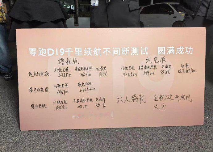 很多朋友问零跑D19 杭州-北京实测的结果,再发个省流版: 测试条件: 全程近1300公里 大雨天气 环境温度10-21度(估) 6人满载 高速路况 全程22℃空调外循环两档风 两位非常实在,让怎么真实怎么开~ 测试结果: D19增程版纯电续航达成率74.3%; D19增程版馈电油耗6.5L/100km; D19增程版综合续航达成率83%; D19纯电版续航达成率近83%; 供大家参考! 再下个结论:零跑D19很多的产品设计细节单从网络信息上是很难获取的,因为很多设计连产品资料都没写,配置表上就更难体现了,要了解这款车,一定要到店! 零跑D19