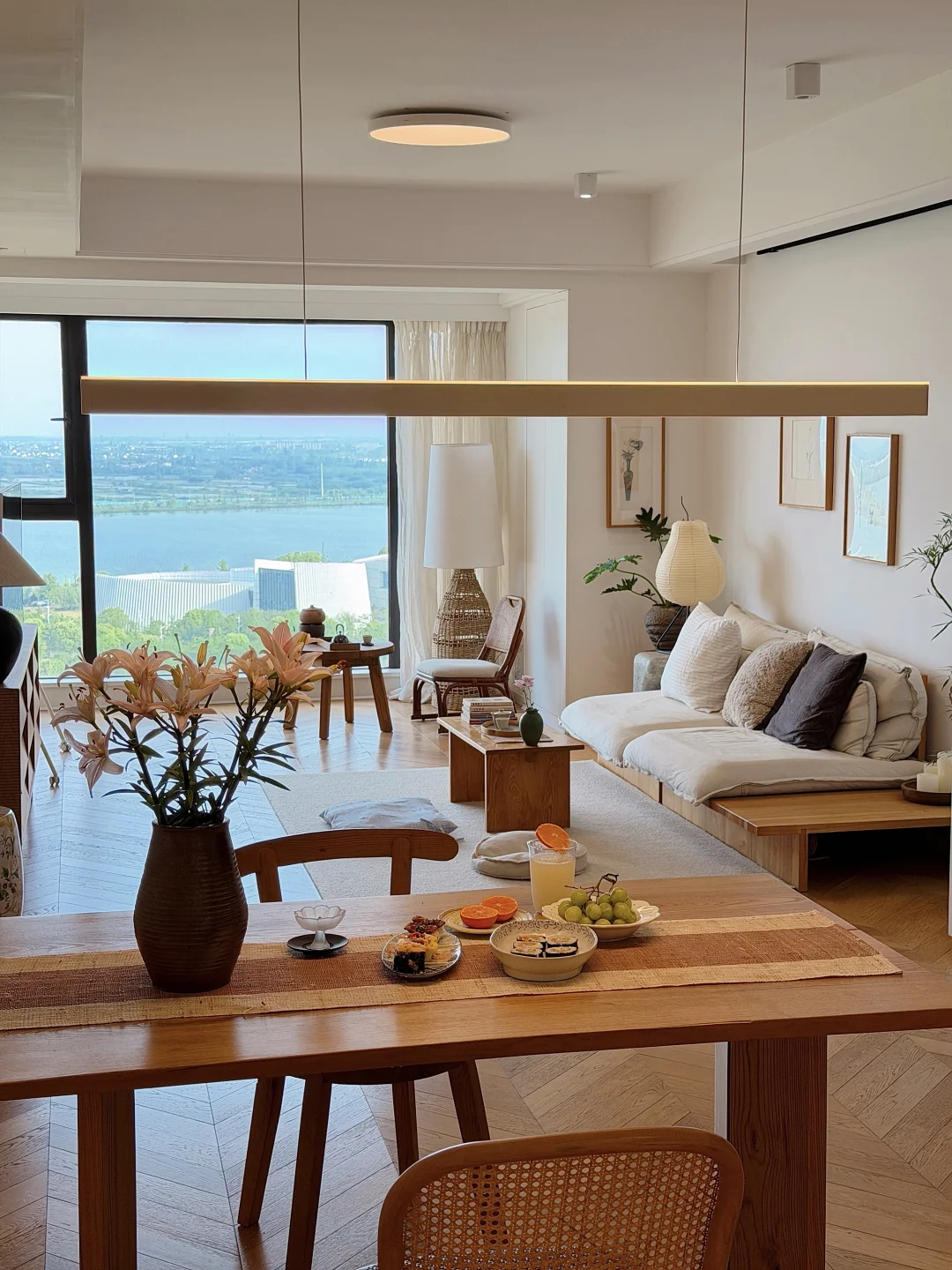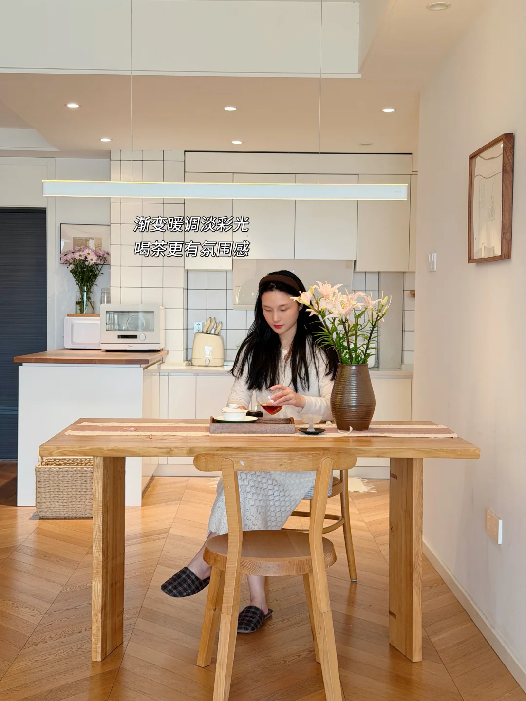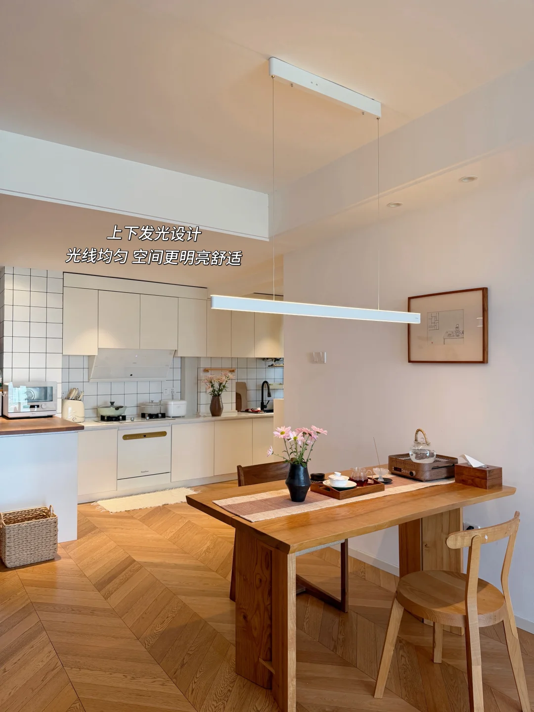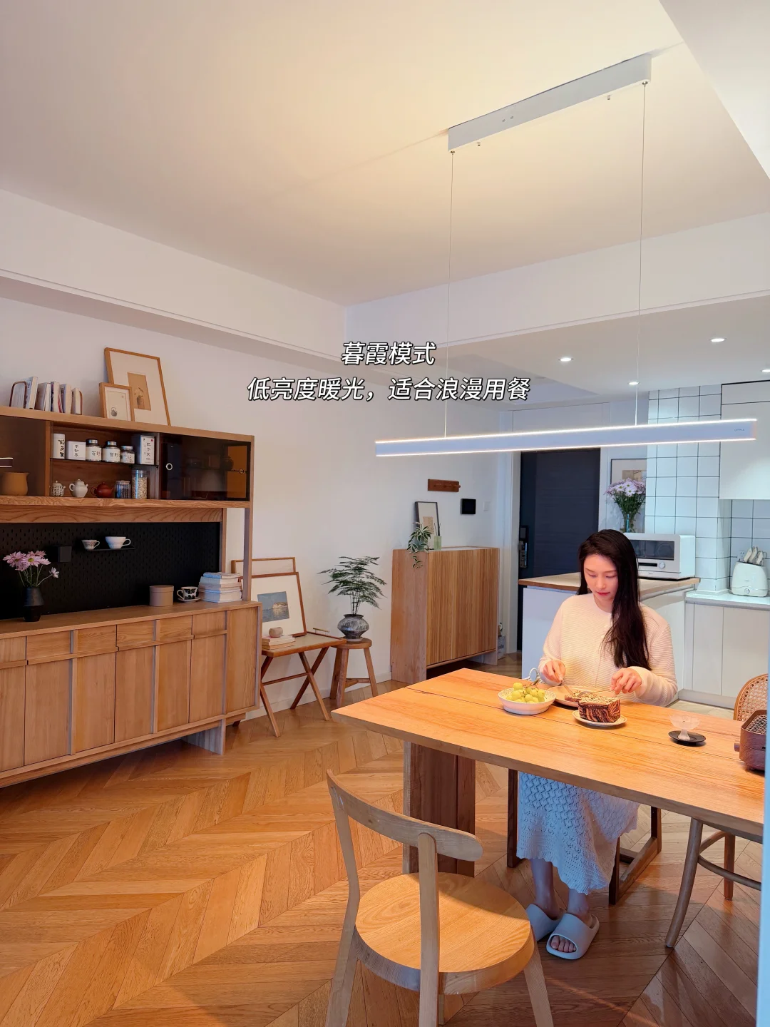 装修到现在已经入住六年了,一心想要打造温柔的原木风,小家不喜欢复杂花哨的设计,就想待着舒服、满眼都是温柔的光,踩过不少灯具的坑,要么灯光刺眼显脏,要么和原木风格格不入。尤其遇到阴天、采光差的日子,家里更是灰蒙蒙的,原木质感全没了。换到最后遇见欧普天境lite客餐套系灯具,才终于拥有了梦想中的阳光家居~