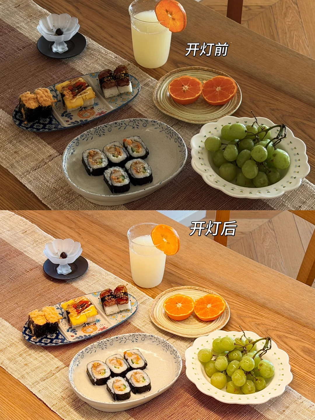 同样是全色段真彩,饭菜在灯光下看着都更有食欲,而且它是上下出光设计且独立可调、彩光能自定义编辑的,想要什么氛围自己调,不同场景切换不同灯光,仪式感直接拉满,真正实现全天候阳光自由!