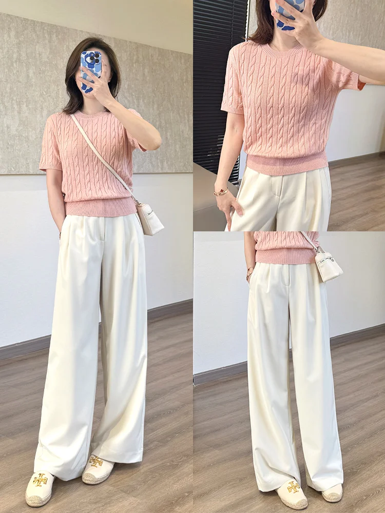 元气少女穿搭指南:白色短款上衣+黑色高腰阔腿裤,轻松凹造型!💕小个子女生如何选
