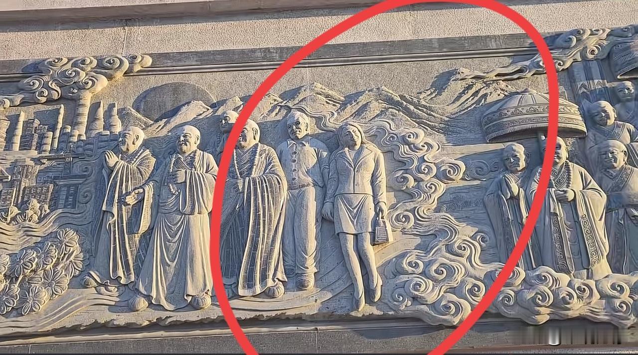 这位提包包的女士是谁?一座佛塔下的高浮雕!